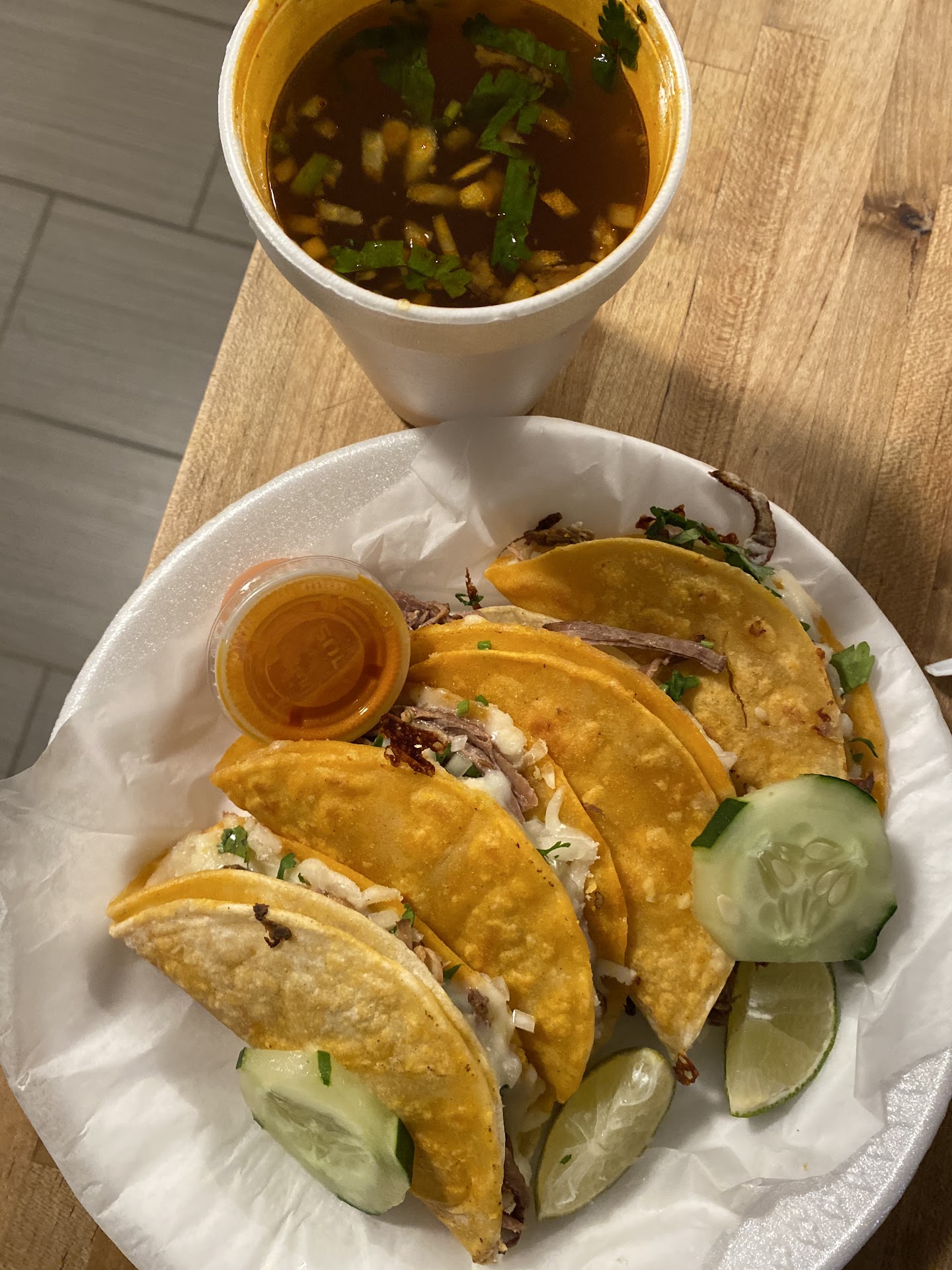 Read moreAbsolutely amazing! I dont think anyone can convince me that there is a better taco truck out there. I had the birria tacos and they were out of this world! It comes with 4 tacos and three different choices of sauce (just get ilt tlhe way it comes!) Great flavors on the sauces they provided, the meat was super tender, full of flavor and fesh ingredients overall. I'll be coming here again, no...
