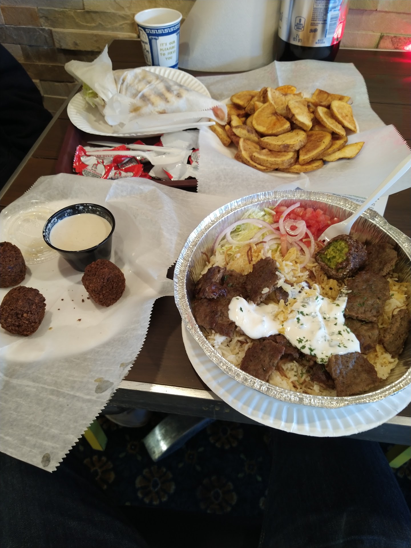 The Food: I was skeptical when I saw the menu ranging from grinders, salads, gyros, falafels, Philly Steak n Cheese to chicken wings and lasagna. Yet everything we tried was delicious! The gyro was full of flavor and meat, the gyro over rice was on a bed of fluffy amazing rice. Falafels were super crispy outside, and tender/moist inside. Jo-jo potatoes were salted to perfection, were crispy, and had an unsual but amazing citrus flavor, perhaps a squeeze of lemon/lime?