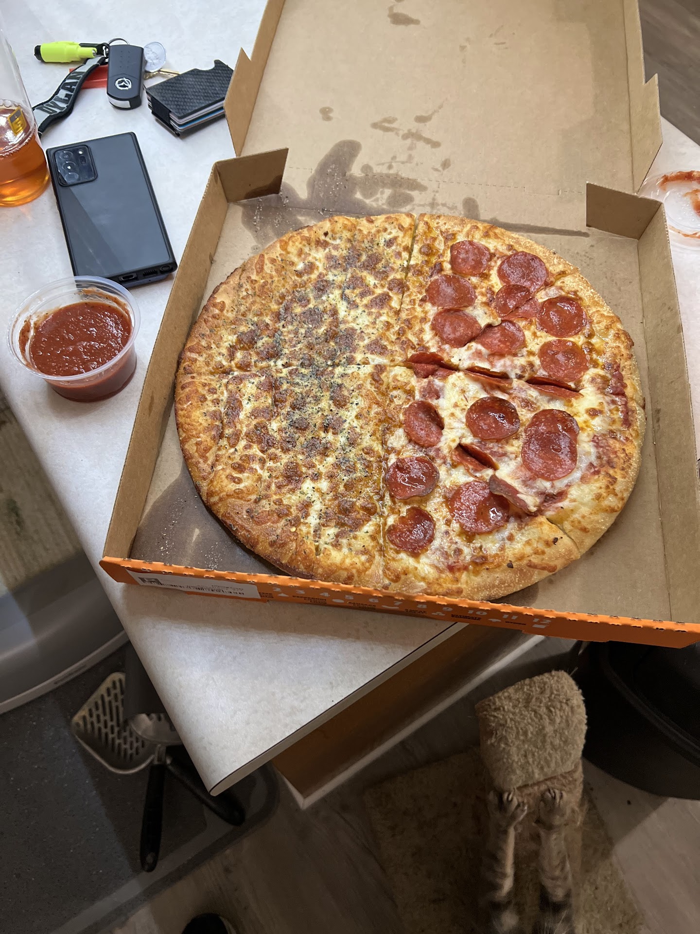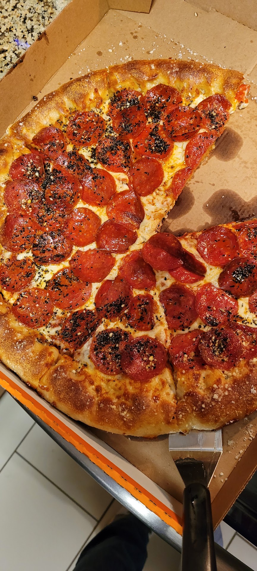 Supposed to be "Hot N Ready"... Walk in and grab a Pepperoni or sausage, pay, then get the pizza as you're getting any change due back, & out the door you go... NOT SO MUCH at this place... You can go in during ANY TIME of its open hours, and YOU'RE GAURENTEED at LEAST a 10 to 15 minutes WAIT... Sometimes for just ONE OR THE OTHER OF EITHER TYPE THAT'S SUPPOSEDLY HOT & READY... You can get a 7 course dinner for a party of EIGHT at EVERY OTHER RESTAURANT IN A TRI-STATE RADIUS... HOWEVER... they do actually taste good & are hot.. once you've waited longer than the time it takes to... conceive/carry-to-full-tern/birth & deliver a human baby!!! ... AND they are ALWAYS NICE/POLITE/APOLOGETIC/PERSONABLE during your "7 YEARS STINT" with them... So for those two reasons alone/only... I give them...