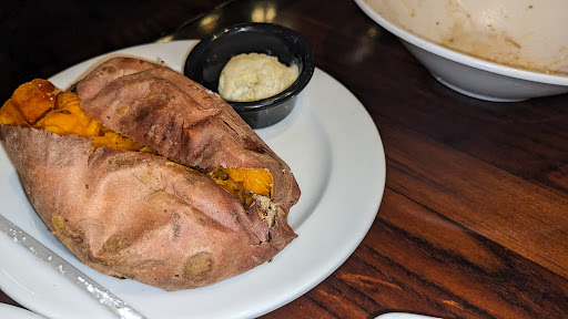 My rock shrimp were perfect - and a generous portion to boot! The BBQ chicken was simply too salty. So much salt that it overrode the flavor of the sauce. The sweet potato was over-baked and the cinnamon-sugar qas literally poured n top of the butter - there wasn't enough warmth left from the oven (read: microwave) to have hastened the melting process, so my first bite was more like sweet sand on sweet potato baby food. Dang it!