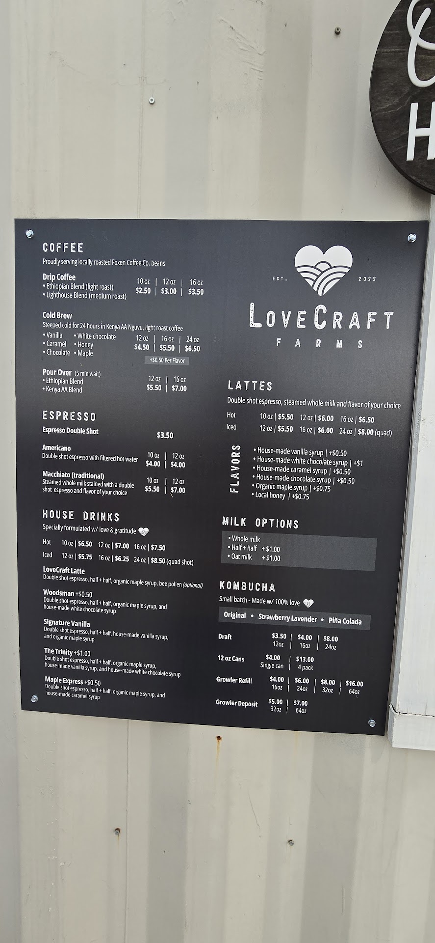 Read moreIncredible! I was so delighted when I finally took the time to stop here. I only wish I would have tried it sooner. Their made in house syrups are better than anywhere I have tasted. I can’t wait to go back and try the kombucha and cold brew. The owner was so fun to talk with, helpful in making a selection and informative about the menu. My friend and I both got lattes from the specialty menu and I was so excited to taste something NEW. I love to support local coffee shops and go to them frequently. Love craft is offering flavors that are truly unique, unlike anywhere else. I...