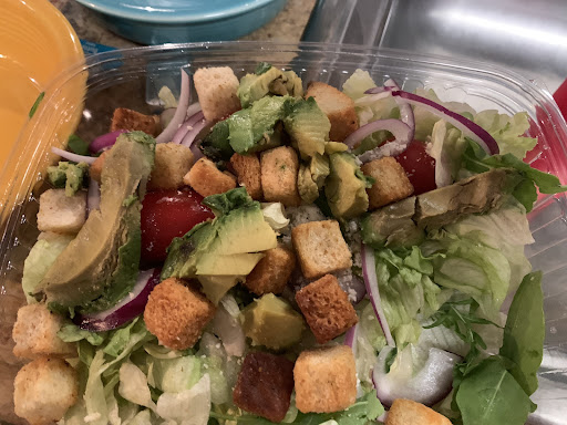 Then I opened the salad. What.the.fudge. The avocado I paid extra for was so old it had turned black. Not just brown from being cut and sitting for awhile, black and rotten. (see photos) One of the three cherry tomatoes had a black rotten spot. The croutons no longer had an iota of crunch - they kind of sadly dissolved when eaten.