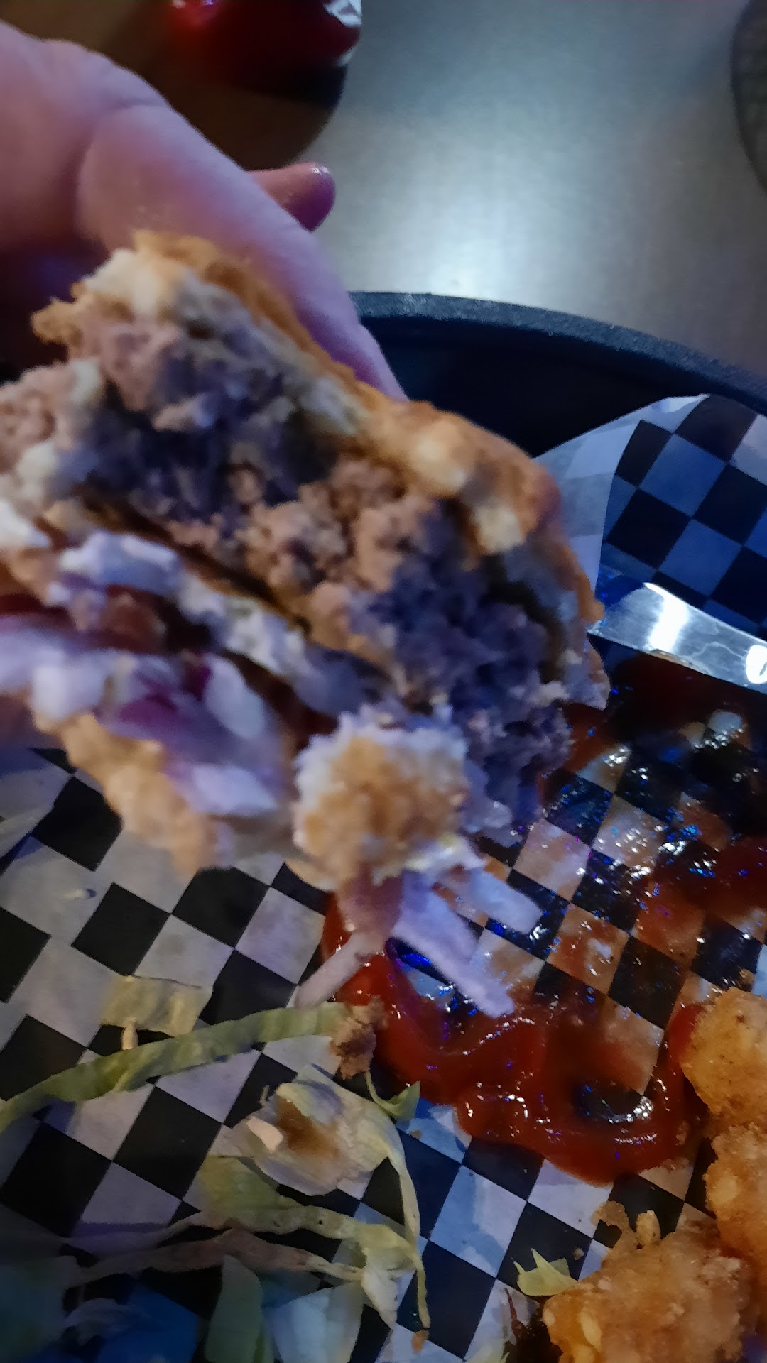 Read moreFirst time at this establishment. We were told they have GREAT burgers. Get there at around 5PM. No signs to wait for a host or just sit down. I guess you have to know. Place was full of good ol boys. Lots of regulars being hugged on and talked to by the server/s. We get waited on fairly quickly. She took our order. Ordered a Morning After burger, wife ordered a Rookie. She asked how we wanted them cooked. We both wanted medium rare. ---------- All this and not a single thing was written down.---------- About 30 mins later, (they were not doing much if any food business. Just drinking) our order came. It was mostly cold, and the burgers were both WELL DONE and very DRY. Tater tots WAAAAY over salted. I did get some extra onions, but very few. I was drinking water, and I drink allot of water when dining, and I never got a refill. She checked in once with us. Had to ask for the check because she was talking to the good ol boys again. When I told here about the food, I said we don't want it to take another 30 mins to get it corrected. Needless to say, we were not impressed, and WILL NOT be back. We get way better burgers at our local mom and pop family restaurant for a whole lot less!