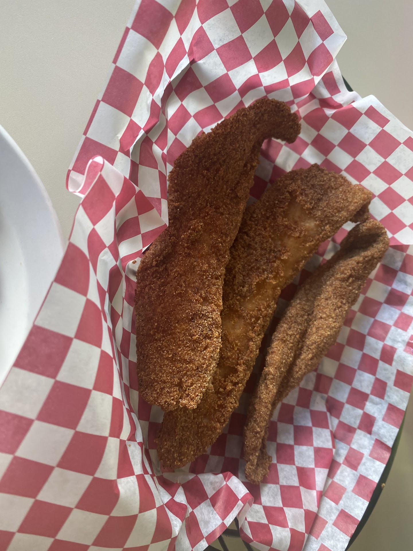 Ā Ā Ā Read moreLoved, Loved the catfish. Some of the best Iāve eaten in awhile. So when we got there must have been a new person or new computer system. Took awhile to order one appetizer of fried pickles, one 3 pc fish meal with fries, an extra side of Mac & cheese, Mt Dew soda and a water. Then nothing was explained that the soda machine did not work so only thing available to drink was water or tea, Then fried pickles come out. (Waitress / cashier noticed at this point my husband did not have his soda he ordered and brought him a 16oz bottle.) Pickles were delicious. Then fish and macaroni and cheese (the extra side dish we ordered) which I would not call this Mac & cheese.. I would call it a spicy garlic sauce pasta dish, it was good in its own way, but definitely not Mac and cheese. Maybe add some grilled chicken with this topped with some sun dried or diced tomatoes and use a penne noodle instead?