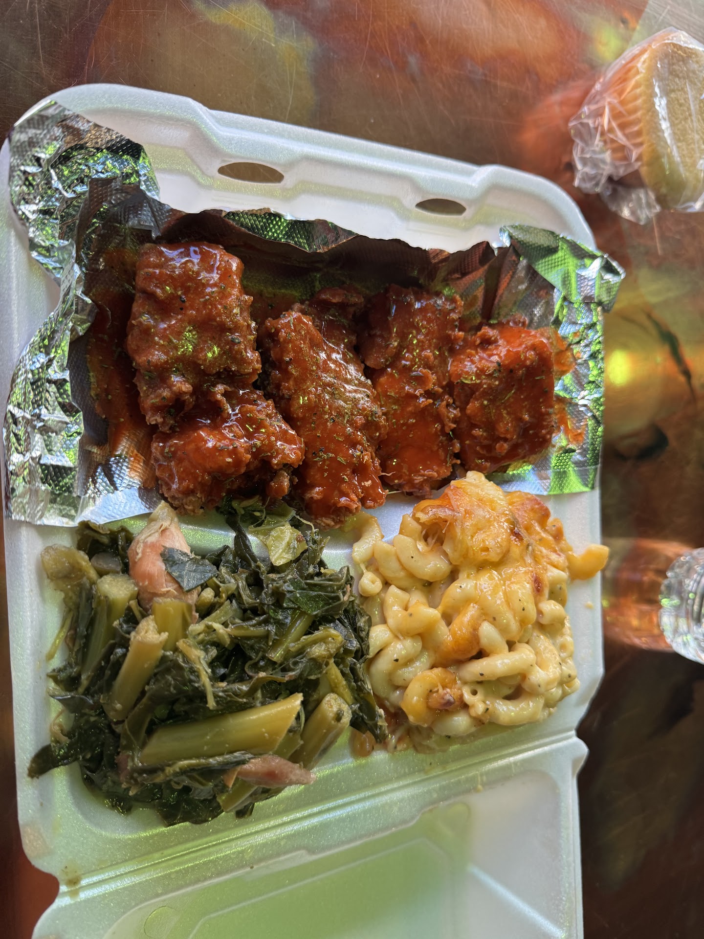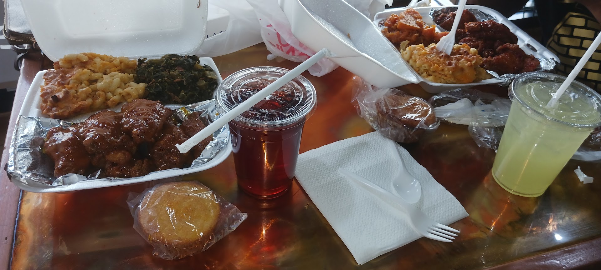 Read moreFriendly service and they check in to see if everything is good with your food a few minutes into eating . Appreciated that the yams were not too sweet and the savory collard greens were made with smoked turkey. We had the Sweet Chili wings and Golden BBQ wings and BOTH sauces were delicious! My only complaints are that the decor needs to be updated and that the cornbread was a bit dry. Fee refills on the delicious ice tea🧋and lemonade when you dine in. The food servings are healthy and enough to have two meals! We surely will...