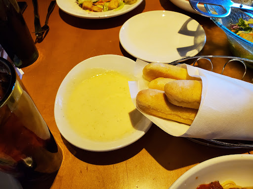 Read moreHaven't been to Olive Garden in about a year. Tonight, Jade, our server was wonderful! She was cheerful and very attentive. She did a great job! The atmosphere was okay, but there wasn't the usual festive italian music playing in the background. Instead, there was some sports talk show on a huge TV in the bar. The food wasn't bad, l but it wasn't really good either. I had Chicken Alfredo with added broccoli, and my husband had chicken and shrimp carbonara over broccoli instead of pasta (he is diabetic and can't eat pasta). It was nice that they made this substitution for him, but we both agreed the broccoli in our dishes was overcooked and soggy. My Alfredo was a little on the dry side, and the sauce lacked flavor. It seemed kind of floury and lacked the usual tasty garlic and parmesan flavor. The chicken seemed like it had been cooked previously and then microwaved. Like I said at the beginning, our server, Jade, was great and we tipped her well as it's not the server's fault if the food is lacking. I just feel that when you spend $20+ for each entree, the food should taste better than it did tonight, and it should be cooked fresh and...