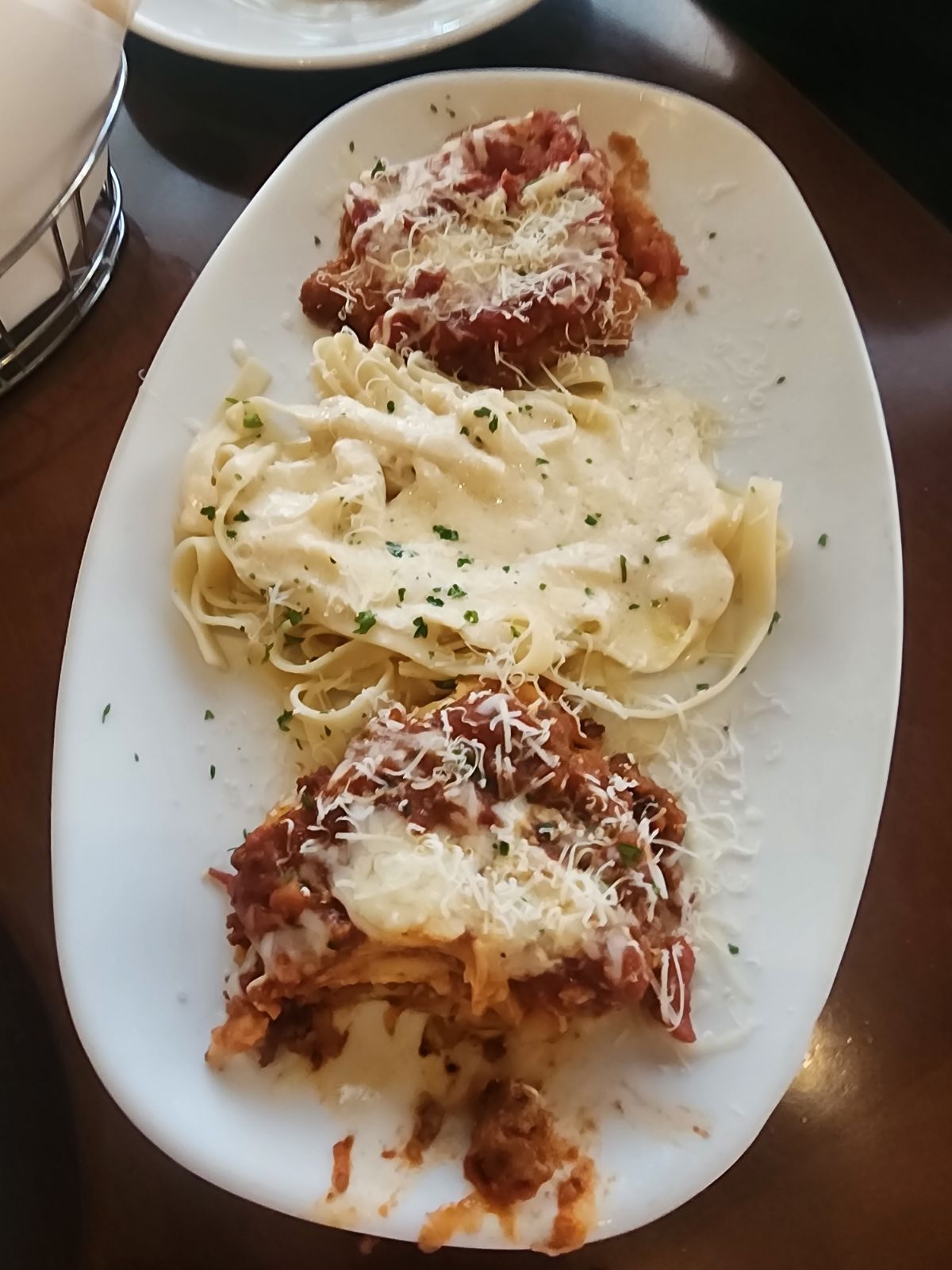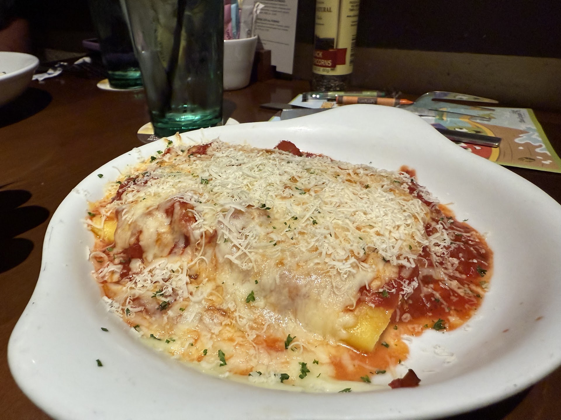 Unfortunately, this is where the service really started to fall short. Our salad didn’t arrive until 30 minutes after we ordered, and the breadsticks took an additional 15 minutes. During our entire meal, our party of seven received only eight breadsticks total, despite politely asking twice for more. About an hour after ordering, we finally received our first bowls of soup and the two pasta dishes—still no additional breadsticks.