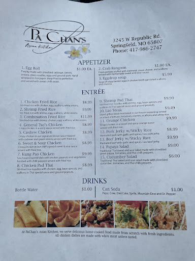 Read morePa Chan's is some of my favorite food in town. When I'm not feeling well, because of sickness or any other reason all I want is Pa Chan's delicious egg drop soup. Its the best egg drop soup I've ever eaten, flavorful and packed with soft cooked eggs, with a deliciously spicy chili garlic topping on the side. (the spicy hesitant should use this very sparingly until you are ready to unleash its full spicy power, its yummy and potent) The entrees are affordable, generously sized and delicious. Best pad thai in town by far. I also love the jerky with sticky rice too. The owners are also so kind, its been on more than one occasion that we've called very close to closing time hoping we might snag some food and they were more than happy to accommodate. (Though we don't make a habit of that because we'd rather they get home, we do really appreciate it when its happened though) I cannot recommend this hidden gem enough, and do not miss...