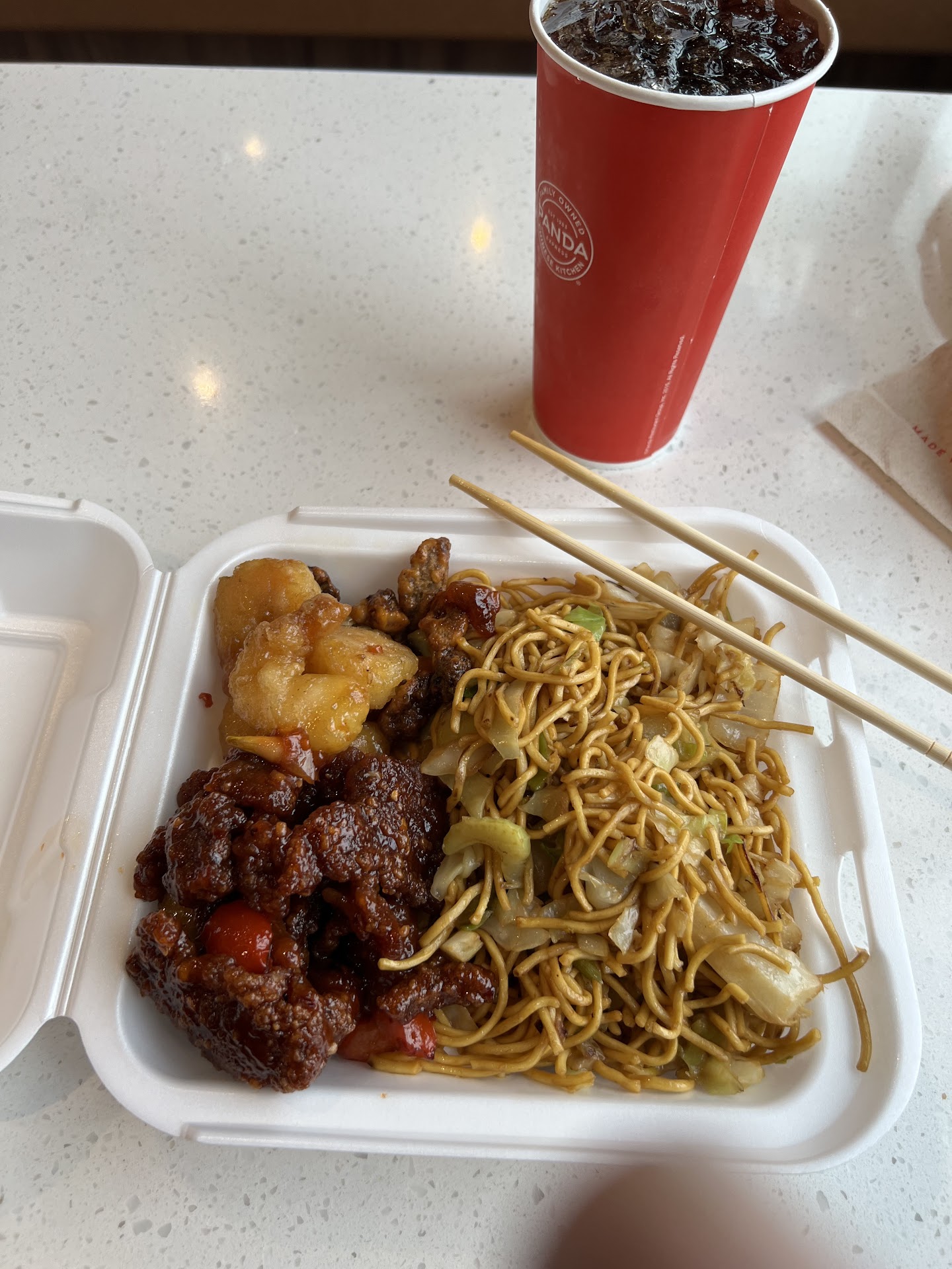 Ā Ā Ā Read moreI normally donāt write a review but felt I had to this time. I just visited a Panda Express this evening. Bought two plates to take home. First they didnāt have one of the items for one of the plates so I got a double order of Broccoli and Beef. Got home, opened up the container to find multiple pieces of broccoli and 5 tiny pieces of beef(and that is being generous). I would have been ok with with eating mostly broccoli but the broccoli looked like it had been setting around all day.š The other order had teriyaki chicken and no teriyaki sauce. I called the store and spoke to an employee who apologized and explained that it is called broccoli and beef because it is mostly broccoli. I replied that even that would have been ok if the broccoli was edible. She offered me a free plate of double broccoli and beef. Now why would I want that? I donāt plan on ever going to a Panda...