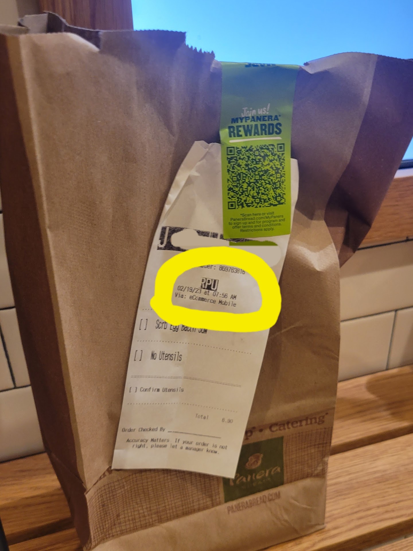 Read moreAfter I had ordered the breakfast online for curbside pick up, and followed all their instructions and let them know I was there via the phone app (around 9.40am, and very less cars and people there), the staff didn’t respond for over 10 minutes. So I went in and I see my food just sitting there on the counter, and the staff not bothered about it. When I asked them what the deal was, they just said ‘we are working on other orders - sorry’. On top of that, when I got home and started taking the food out for my family at the table, we saw 2 orders were missing. I had to go back and had them make that order for us. What bugged me most was the staff laughing and chatting, and texting on their phone while all this was happening, with no care for customer. There was no sign of a manager there either. Our family birthday breakfast got so upset and irritating, I doubt I’ll make online orders with Panera again. Nor will I add tip for them again. Better to wait at drive through....