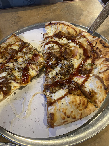 The pizza tasted as if it had been sitting. Took one bite and said no thank you. The thin crust bread was soggy. A calzone was also ordered and the bread was soggy as if it was sitting there. The calzone was also warm at best. A bbq chicken sandwich was order by another person in our party and the chicken was cold. I tasted some of the chicken and it was again bland. Iām not sure if it was meant to be served like that, but food was overall disappointing to say the least.