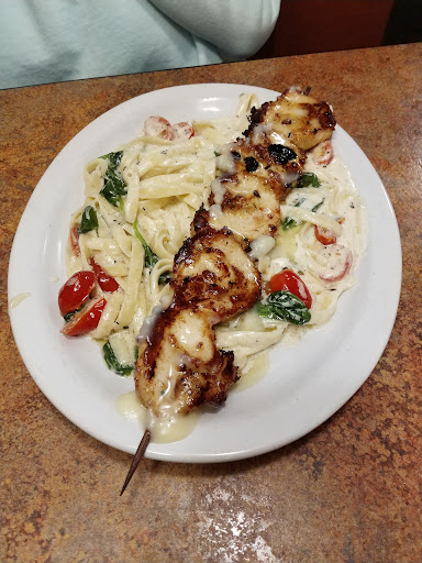I went here in anticipation of getting the seafood fettuccine. When placing our= order, the manager asked my husband if he wanted tomato and cheese on his salad. He said no tomato. I was asked if I wanted cheese, and said yes. (She didn't ask me about tomato). We were brought 2 bowls of iceberg lettuce with red onions and one of the bowls had cheese. There was so much dressing on it I couldn't taste the onions. This was marinaded lettuce now salad. When our entrees arrived, my husband's had so much 'cheese dirt' on it you couldn't taste anything else. He ate the manicotti and left the rest on the plate. My seafood fettuccine had less than 1 stick of imitation crab stick and 3 shrimp on it. There was more mushroom slices than seafood on the dish. It tasted like mushroom fettuccine with a shrimp garnish. When we were getting up to leave and she asked how our meal was my husband told her it was bad. He started explaining what was wrong with his dish and she looked at him and said "Oh, you were serious." She didn't believe he was complaining because he wasn't yelling or making a scene. He simply told her we wouldn't be back. As we were walking away she loudly called after us to enjoy the rest of our day... everyone sitting...