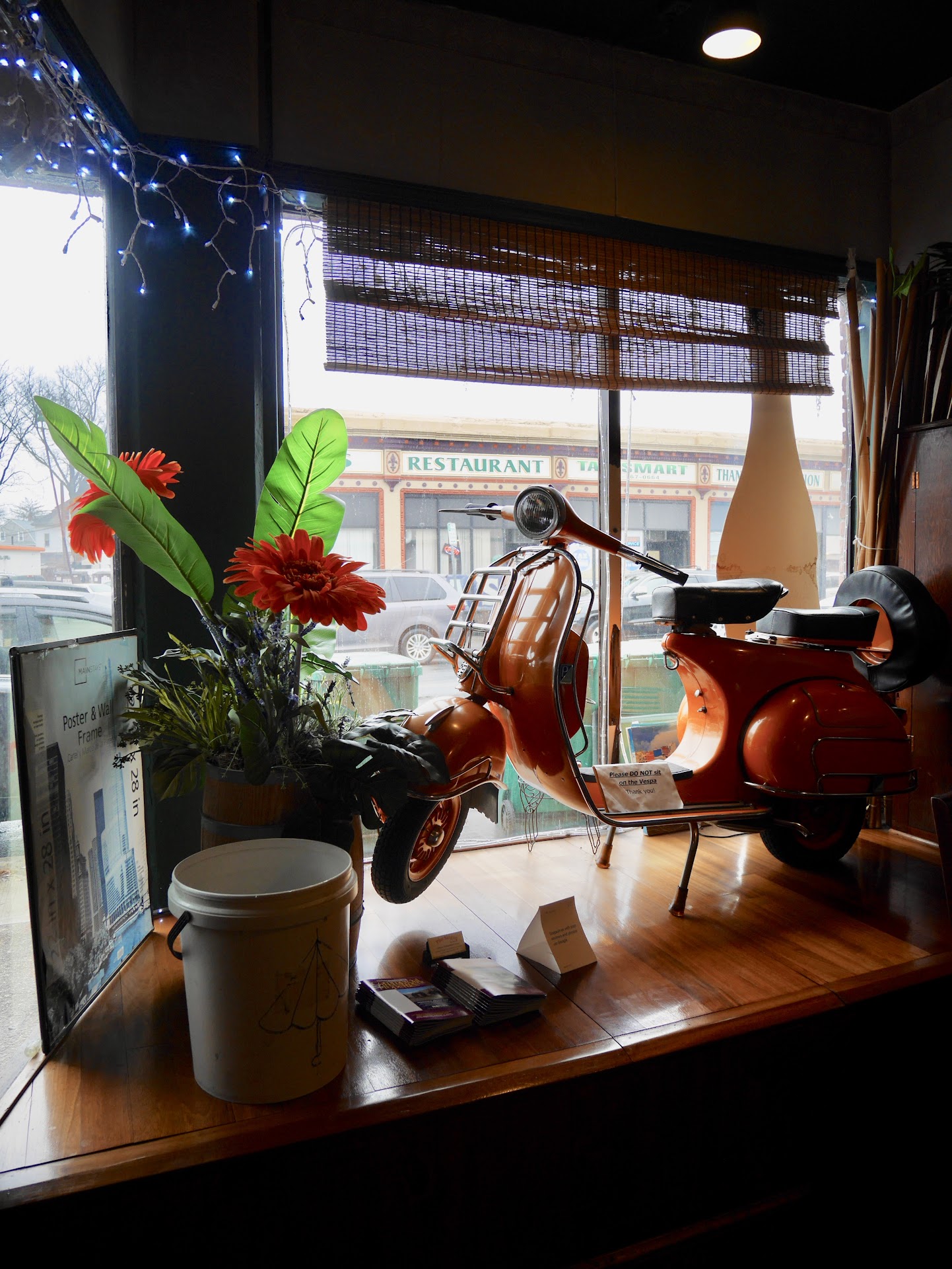 September 1, 2024 I took my family into Springfield for church and we were going to meet friends for an afternoon discussion and it was too long and too much hassle to go home to Chicopee first, eat then go back to see our friends in Springfield, so we decided we would have lunch at one of our old favorite restaurants in Springfield, Pho Saigon. We had been there many years ago and I had been there in High School on a trip to try "authentic Asian food." Well, memories came flooding back as we saw the VESPA in the window like old times. We went in and the waitstaff was very kind, the floors (especially in the back) were uneven and warped as ever. The menu was pretty normal and I suddenly had a hankering for a big bowl of noodles. The kids wanted a drink in addition and normally I would say no, the water is fine but I knew I would write a review so I decided I would order a few. I was concerned they would deliver the drink in the middle of the meal but they were smart, they made the drink later and gave it to us as I almost finished my noodles. I got the classic bowl of noodles with sliced beef and some veggies too. They bring out a plate filled with stuff and there was no explanation about what to do. That would have been helpful at least for my kids who didn't know. But the assumption is that you've eaten there before. But the stuff they brought was a mix of many things like a vegetable and even some leaves and slices of jalapeno. I ate and ate. It was so good. The waitstaff was very attentive and constantly came to fill our waters and my mother-in-law's hot water. The bowls were so big I ate a little bit of everyone's. It was good yummy food. Finally the drinks came out and we were going to have to run. We got a mango bubble tea and a limeade drink too. I got the Vietnamese coffee with condensed milk that came really well done. The milk was thick on the bottom. The coffee had already gone through the coffee maker thing which was resting on the coffee cup itself. I'm a coffee drinker and I didn't know what to do to do it the right way. Thankfully I spoke up. Just a simple: "Have you had our coffee before sir?" would suffice and the customer would admit, No I don't know what to do. The spoon nearby was a great idea to swirl the milk and coffee drink together. Nice colors and then I poured it into the cup of ice. Yum. It was really good. Well done, Pho Saigon. You did it again. Not much seems to have changed over the years which is a good thing. The restaurant was still packed and people coming in and out. Our three kids all ate well and one of our kids has a peanut allergy, the waitstaff told me we don't add that at all! Though the price was hefty, the food was delicious and the bathrooms somewhat clean, Pho Saigon is a much more authentic Asian choice in the X in downtown Springfield.