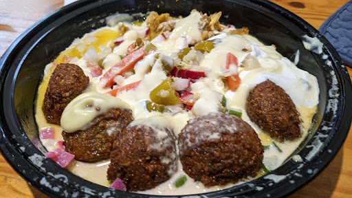 Soooo good! I will be the first one to admit I don't know anything about Mediterranean food or falafel, but I was looking for an exotic bite to eat. I was thrilled to see a falafel sandwich because I had always wanted to try it. Placed an order online and went to pickup. When you pull up the first thing you think is "this is definitely one of those hole-in-the-wall restaurants." Most of them I find are gems - this one especially did not disappoint. A boom box is on the table playing culture -appropriate music, very clean, a little busy and OH MY GOD THE SMELL!! So fragrant with spices. The sign says come in for the smell, come back for the taste and it is not lying. Unfortunately the little tablet they had didn't notify them of my order, so she swiped my card and looked it up and they made my order fresh. Expect to wait as this is a chipotle -style restaurant in the aspect you build your own meal so things are made to order - fresh Hot and totally worth it. I have no idea what a falafel sandwich is supposed to taste like but it tasted phenomenal, pita was crispy and hot, and it's so filling. For my patience they offered me a baklava cheesecake - please don't sell yourself short and get dessert. I don't even like cheesecake and that was the best damn thing I have ever tasted. All while at an affordable price for size of sandwich and labor, this will be on my list of places to come back to! Super friendly service and they work well together under pressure. Go give these guys a try- you won't be...