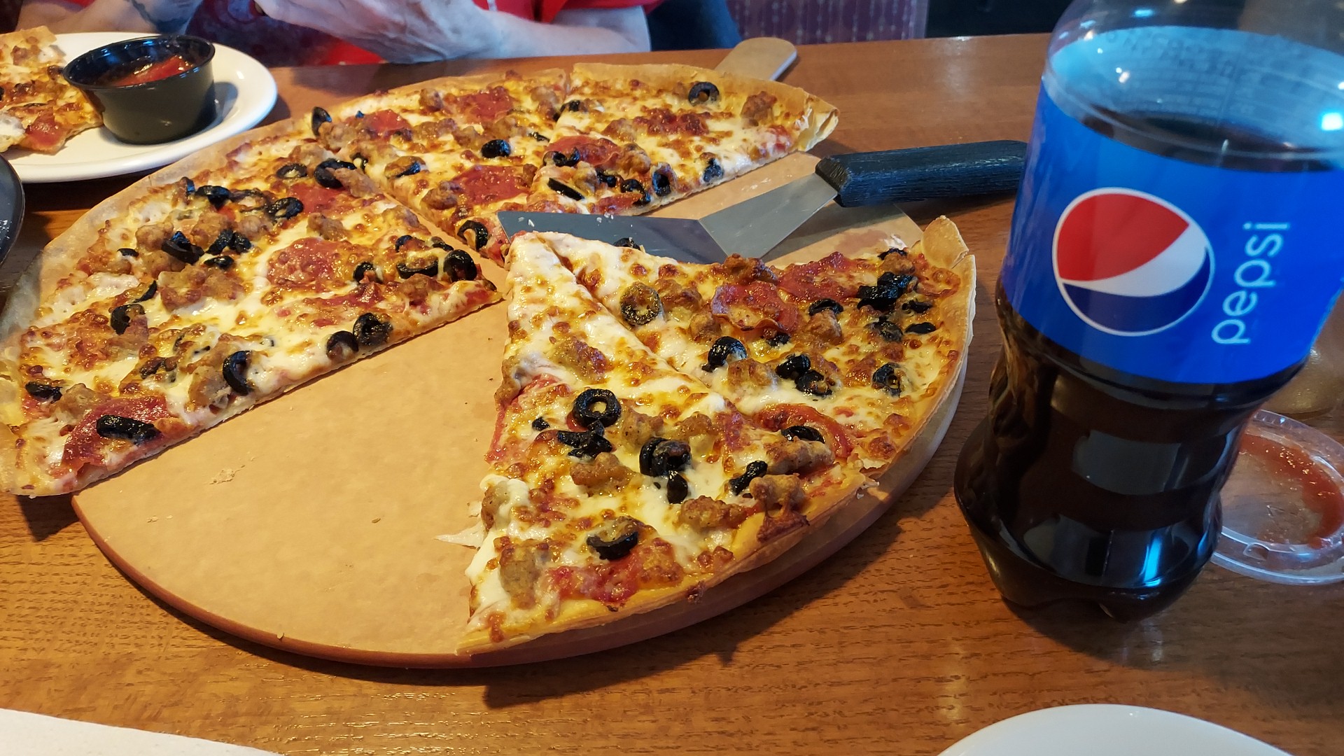 Stopped with one of my employee's for lunch today and found the same thing happening the last time we were in, little to no pizza and the few pieces that were there were cold ( 3-5 ) pieces at best. We were there approx. 45 minutes total ,after 25 minutes i got up and walked over to the kitchen prep area and ask the lady if i could get a glass of ice water and a Pepsi 5 minutes later they arrived at our table.the whole time we were there we only saw 2 different pizza's brought out and they were half pizza's. I questioned the lady when i paid for our meals why there is no food for customers to eat in the 45 minutes there in the restaurant , no table service ,you have to get up and ask for something to drink, unfortunately this is becoming the norm for this store ,being the second time in 2 weeks happening. Leadership starts at the top and is a trickle down affect in a company. Seem to be lacking. And i hadn't mentioned the manager was the one taking care of...