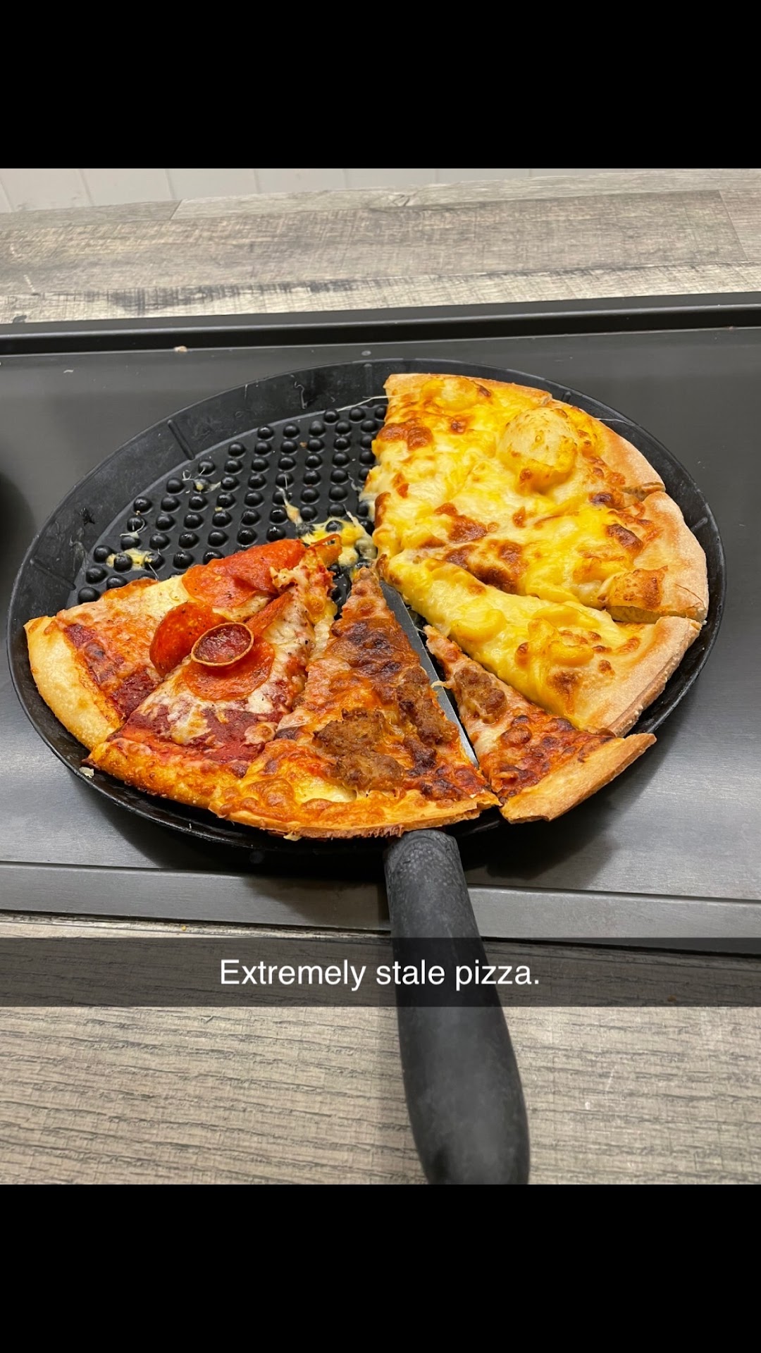Read moreThis is my second time here and it’s just the worst. Each time I’ve been here, the pizza looks like it’s been sitting out for days. It took several minutes for anyone to acknowledge us when we walked in. When they did greet us and take our money ($50), we also put in an order for a special pizza and when it came out 20 minutes later, it was nothing like the pizza we ordered. The girl didn’t listen to any but a couple of requested toppings. Then we had to wait another 15-20 minutes for the correct pizza order. When it was taking a long time, I went to talk to a woman who appeared to be a manager, to try to find out if it was almost done, she saw me, said something I couldn’t quite hear and then ran away. (Like, almost literally running, and no, there wasn’t a fire in the kitchen.) Actually all of the staff did this and I was left standing there basically talking to myself. They absolutely do not care about customers, and I get it, food service is a sucky job, but customers shouldn’t have to expect to be treated like garbage just because you don’t like your job or interacting with people in general. Do better. I’m not usually a Karen about this kind of stuff, I mean c’mon, Cane’s deep fried a hair in my chicken strip and I still gave them 3 stars for crying out loud. But there’s no reason why the women up front should have treated us like absolute garbage.