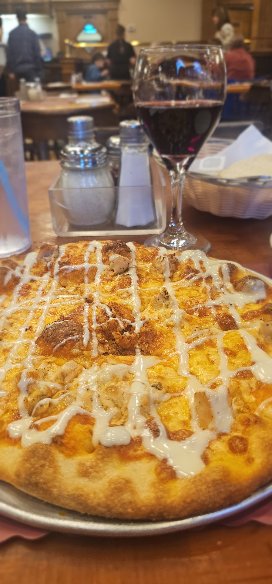 I asked the server which they preferred, Pizza or Pasta and he was amazing and let me know the pizza is made fresh in-house. The pasta is homemade as well but the pasta is actually made from the sister company up the road and then transported to the restaurant. Sounds great, both are freshly made and not store-bought. I decided to try the pizza first. I was a little disappointed that I couldn't get something like my usual pizza (BBQ base, with chicken, bacon, peppers, onions, jalapeno, pineapple) but I went with the Hawaiian. The server was excellent and let me know that's not a "traditional Hawaiian" and doesn't have the pizza sauce on it. I tried it anyway and while I do think it would be better with the pizza sauce, it wasn't bad and still had a really good taste to it.