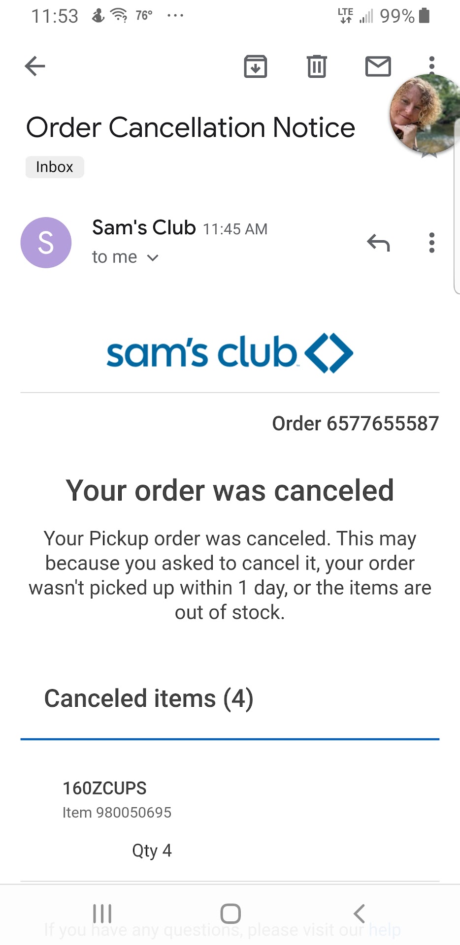 100 mile round trip, twice, 1st for 20oz cups that showed available for delivery, neither store had them, lots of 16oz cups though, same day recieved email stating the delivery of 16oz cups was canceled due to out of stock. Go online and find the sunshine store has them so I make a pickup order for the next day between 11 and 12. Arrive at Sam's at 11 50. Go in to get my order, go to my email to obtain order number to find a new email sent at 11 45, canceling my order, out of stock, I inquire as to why my order was not there and was told they don't hold items for orders. Try the other store. REALLLY !!?? Bad business practice and I will be researching other avenues for my supplies as this type service has become standard for them.