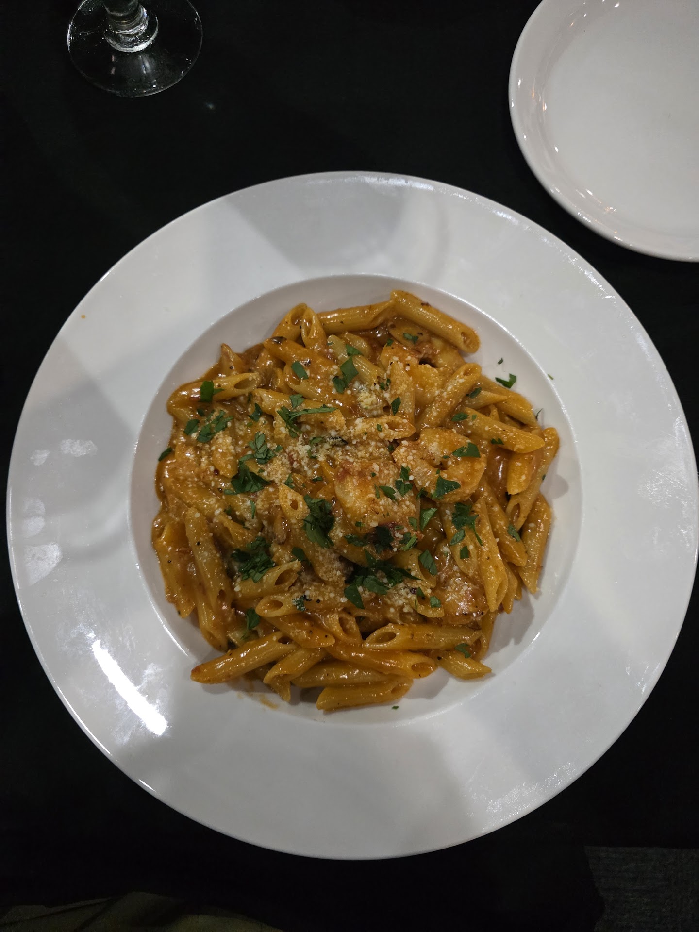 The night started with our fantastic server who was attentive but let us drive the night with when it came to when we were ready to order. We prefer it this way so as not to be rushed. Once it was time to order, we started with a fabulous bottle of wine, a super Tuscan. It was so fabulous that we ordered a second bottle. I wish I could say we tried a variety of things on the menu, but my husband and I both ordered the same dish...shrimp diablo. It was so incredible that once I started, I couldn't stop eating. There are not enough stars for this dish. So many flavors and paired with the wine, it was a homerun.