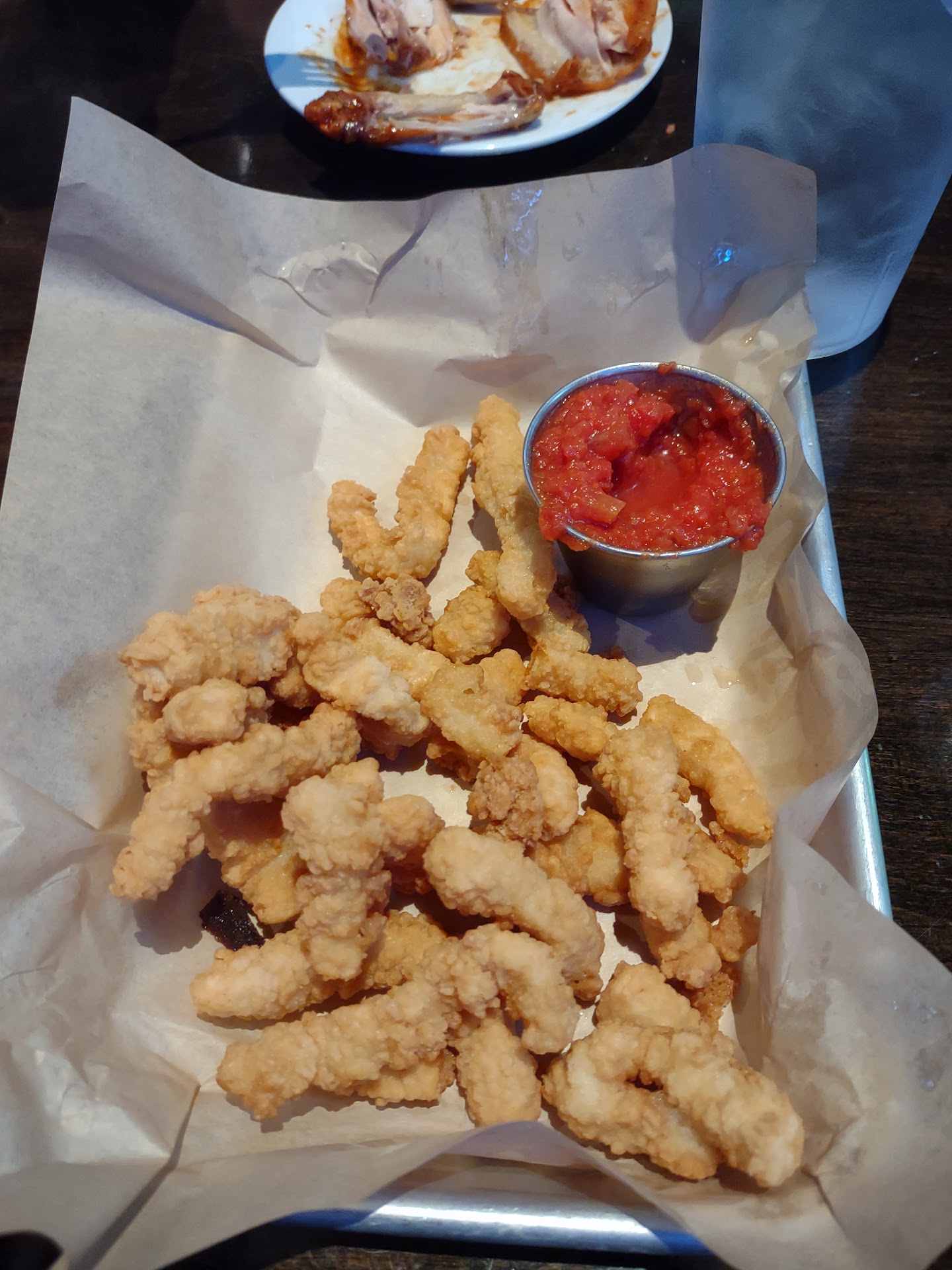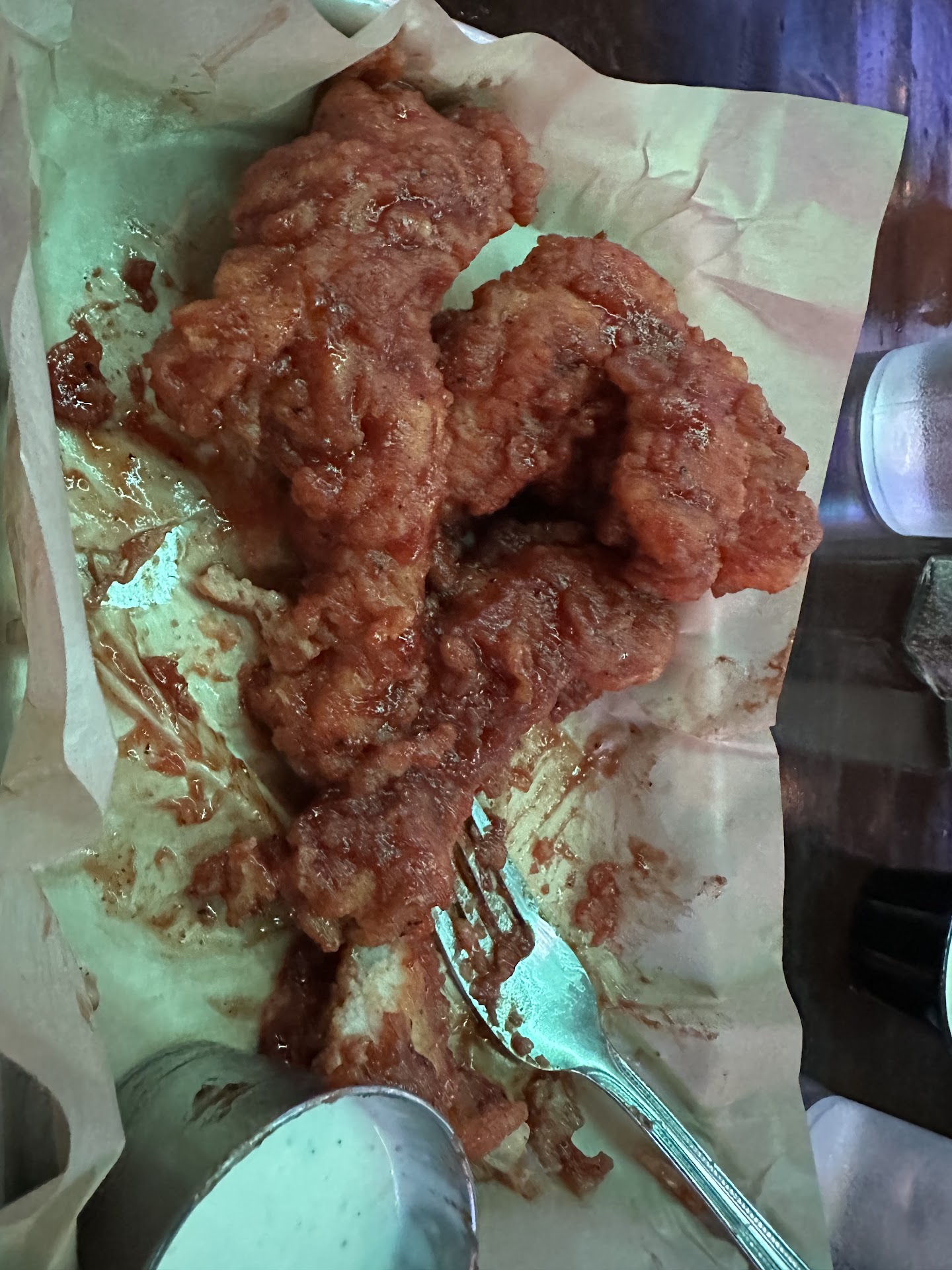 The food was very delicious. It was cooked to perfection and very hot when it came out. Thats where the good of this review ends. I arrived around 8pm so there was not many patrons nor staff. I walked in and sat at the bar. I sat patiently while the 2 bar staff flirted with each other and argued about a jar of pickles. Both bar staff walked past me several times and even stood in front of me without greeting me. Two apparent regulars showed up while I was still waiting to be acknowledged. They were immediately given beers by the male bar tender. Finally, about 20 mins after sitting at the bar unrecognized, the male bar tender asked if I was ok. I requested a Long Island Ice Tea. He informed the female bar staff as it appeared they were taking turns with who got the next guest. Even after being told I was requesting a drink and that she missed me, she still tended to other customers and refilled their drinks THEN brought me my drink without an apology. How did I get my food ordered? Well I took it upon myself to walk to the end of the bar to get a menu as I thought this would be an obvious sign I wanted to order food. I already knew what I wanted from online but was giving the staff a chance to save themselves. Again I sat with a menu in front of me for at least 30 minutes and I was NEVER asked if I wanted to order food. Instead, I had to ask the male bartender of kitchen was still open because the girl taking care of me was off doing who knows what. She promptly took my order when notified and got me my 2nd second drink. Its my opinion that no patron should walk in and sit a bar with under 10 patrons and not be acknowledged for such a long time. I'd be willing to give this place another chance but perhaps with a different server who acknowledges and checks on the customer. Service was...