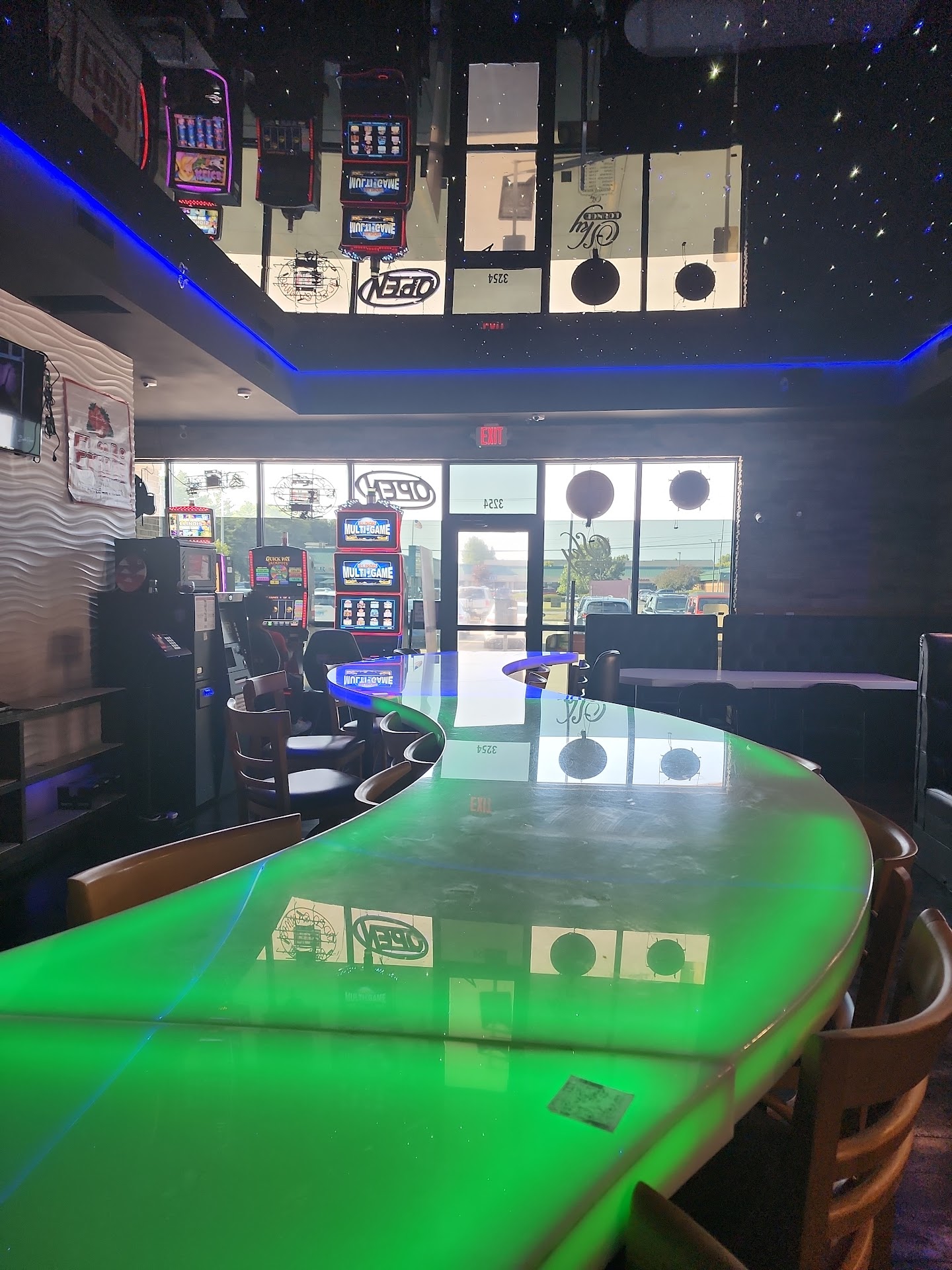 Wow, great looking space! The twinkling star sky was super pretty, but that's where the dream ended for sky lounge. The service lead much ti be desired. Hostess or bartender, who knows she may have been the cook too, was too concerned for her friends at the bar. After being told part of my Philly cheese steak sandwich wasn't available, she brought me a menu to find something else. After quite a while and my friends appetizer arriving already, I had to walk the menu to the bar and ask for my order of the ribeye sandwich. I asked if they could include the peppers and onions from the philly to the ribeye. She had yo go ask, and upon her return they suddenly have the philly cheese steak. When it finally comes, there are no peppers and onions on it. I ask if they could add them and it comes back with no 4 pieces of diced pepper and maybe one piece of onion. The only good food came from the fryer.