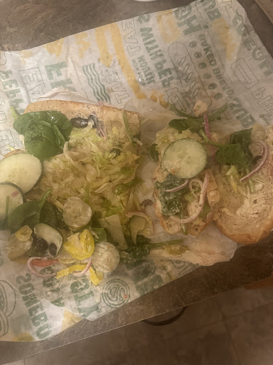 I ordered a grilled chicken sub with cucumbers, lettuce, onions, green peppers, olives, and light sweet onion teriyaki sauce. I got a sub with some kind of white stuff on it, tomatoes, pickles, banana peppers and the stuff I ordered. I have no idea what that white stuff is and I hate tomatoes so I had to throw the whole sandwich away. I was so disappointed and that was a waste of my money. I will never be going back to another...