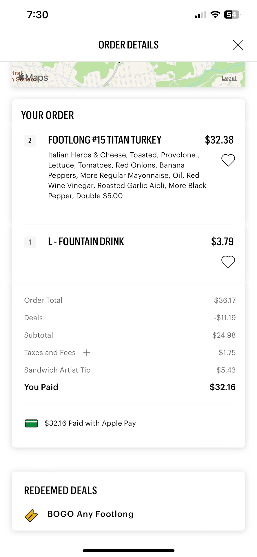 To be clear, and using the words of Subway themselves, at least in the app, I ordered a "Titan Turkey" #15 - and again, THEIR words, it's supposed to have 33% more turkey than their standard turkey sub. Read that again. I, however also opted to pay an ADDITIONAL $5 -PER FOOTLONG - since I ordered two to add DOUBLE meat. So already I've inflated my bill $10 extra. These sandwiches should have been absolutely overflowing with turkey and yet I'm disappointed, almost screaming inside because of the amount of money this came to even after using a BOGO reward.