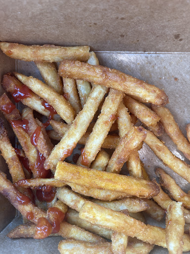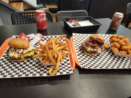 Food: burgers are 6 oz. So they are fairly small. They don't come with lettuce/tomato/pickles. The sauces are good and the overall burger is decently flavorful. Fries are like the old cafeteria fries that are very crispy. If you know, you know.