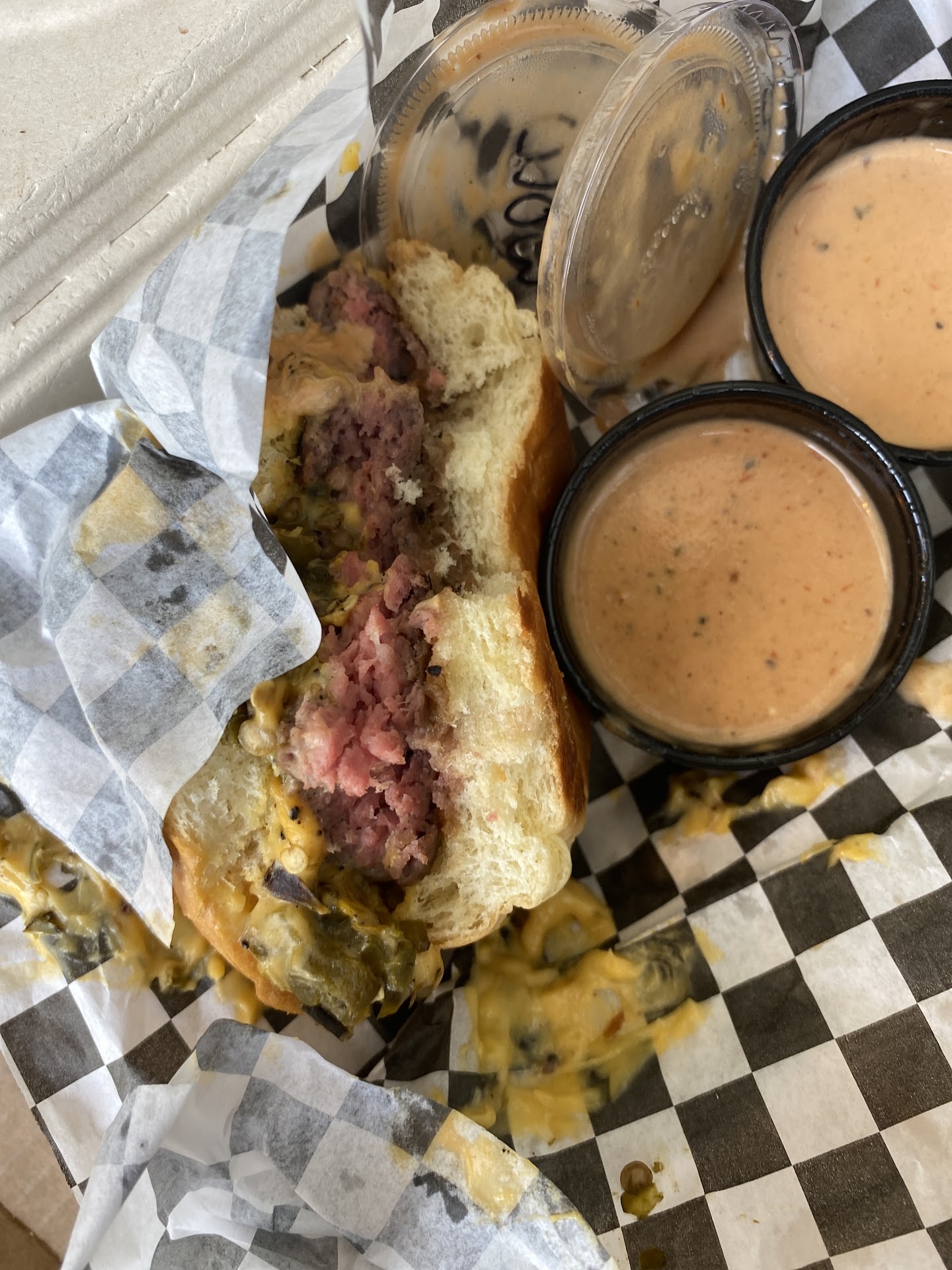 Read moreFood is so yummy! It's definitely a little slice of the south in the PNW, especially the Sweet Tea (sweet exactly like in the south, not like the west coast). Everyone is friendly and funny and very welcoming to fur-babies. They are great at customizing the food so I personally am not a fan of spice (I can't handle simple seasoning lol) and I ask to not have it on my patty and they will make sure it's not on it, and even if something needs to be adjusted they are more than happy to fix it :). The blonde dude there is so nice even when they are busy, with lines, I saw them on a phone so I guess phone orders, and I saw on Grubhub they are on that too. Patience for those who claim 20 min for food is too long, food carts are mini restaurants not McDonald's. Oh garlic fries... mouth waters yumm....E. lol 😆 I will go there to fill my southern food needs...plus my do, he goes crazy!