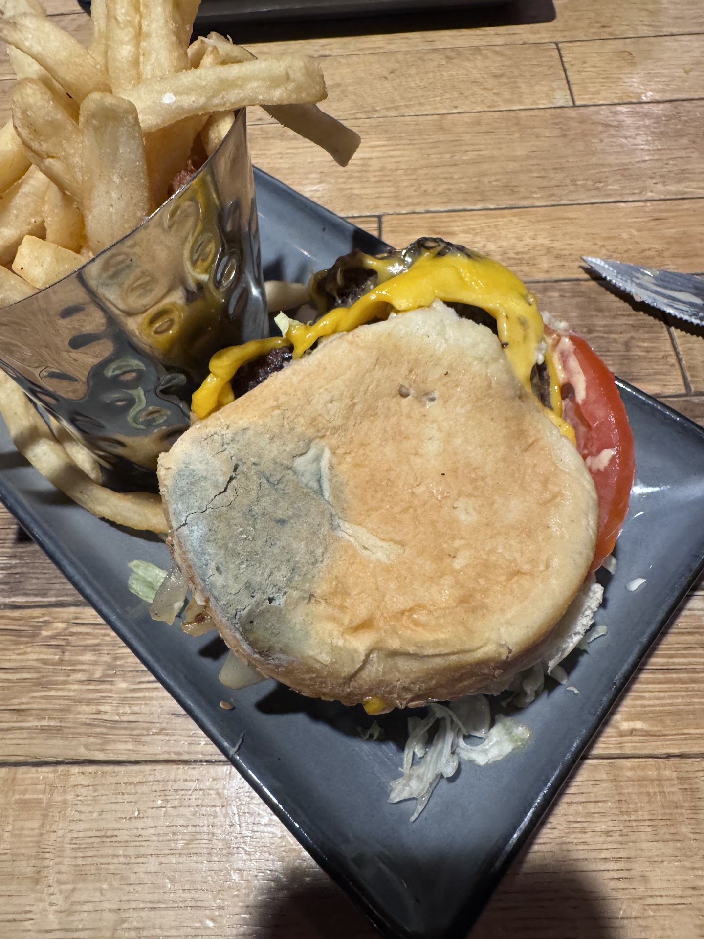 Very disappointing. My wife and I had tickets to go see Steve Martin and Martin Short at Symphony Hall Thursday night. We decided to go Red Rose as we had a gift card and dont go into Springfield often for dinner. Red Rose was wall to wall people and we knew we wouldn't be able to get the show on time so instead decided to go try one of the restaurants at MGM. This would be our first time at MGM since they opened. We decided on The Tap. We liked the look of it and the atmosphere. We waited about 15 minutes to be seated. Not bad. Once we sat down we it took a little bit of time for our waitress to get to us as it was busy but not crowded. There were still open seats that we could see around the restaurant. Once she came over, we quickly gave her our order, knowing it might take a while to get to us. I had a swiss cheeseburger, which I ordered medium well when asked by the waitress, and my wife ordered the salmon entree. While we waited we talked and watched some baseball on the numerous TVs they have. It took our order 25 minutes to get to us. My wife checked her salmon and immediately saw that it hadn't be cooked throughly and was raw on the majority of the inside. It looked like it was thrown on the grill for 2 minutes so that only the outside gave the appearance of being cooked. We brought it to the attention of staff and one of the managers came over to return it and get her another entree of salmon. We shared the fries that came with my burger and I waited for her replacement entree to brought out before eating my burger. The maitre d brought out the replacement entree and asked her to check it. Again, the salmon was completely raw on the inside. I bite into my burger and noticed it was cooked well done, not medium well. There was no pink anywhere on the inside of that burger. I told the maitre d I would eat the burger but my wife asked for a bowl of soup instead knowing we needed to leave soon to get to the show. We asked the waitress for the bill and she had to redo it to take the salmon off it, however, we were still charged for her soup, which I found to be surprising and greedy. After not getting an entree not once but twice to be uncooked because theres a "chef" that cant cook fish is and then to be charged for the soup to replace the entree because we were out of time was a big slap in the face. This "chef" couldn't even cook a burger right. I could've done better on my grill and saved myself the $30 the bill came to for a burger, 2 bowls of soup and 1 soft drink. Needless to say we are very disappointed and will not be returning and will not recommend this restaurant to people. The other thing that I found disappointing and very rude and disrespectful was that this restaurant is located inside MGM which is a major sponsor for the Boston Red Sox and not one tv had the game on for that night. Instead, most of the TVs were showing the New York Yankees. The New York Yankees!!!!! Why not just dump a beverage over my head too just to show how disrespectful this place can be to an area that is primarily Red Sox country. The management of this restaurant are NOT doing their jobs to see that it operates efficiently and respectively to...