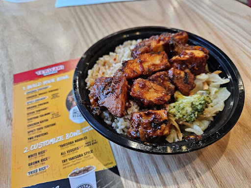 Had the chicken teriyaki bowl with white rice and veggies and an egg roll both were very good. The chicken is a marinated chicken thigh grilled to perfection over a bed of steamed rice and veggies. I got the smallest bowl and as an adult that was definitely plentiful. It came with extra teriyaki sauce for my rice/ veggies. The service was nice and professional, the inside was clean as they just opened not too long ago. Parking can be tricky, just pay attention because the parking lot is very cramped. Yes I nearly got into a head on collision if I wasn't paying attention. Also don't hog the entire parking lot either, park in one spot not two. Stay off to one side not the middle. Yes this needs to be said for all...
