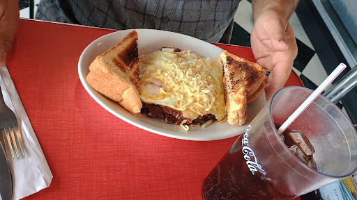 Read moreThis is a cute little retro diner. There was a variety of food choices on the menu, serving both breakfast and lunch items. We ordered the slider, cheese curds, burger basket, chocolate milk shake, bottled root beer, root beer float, soda and chili cheese fries. For a family of 4 we spent around $80 for our meal. The waitress was sweet and made sure we enjoyed...