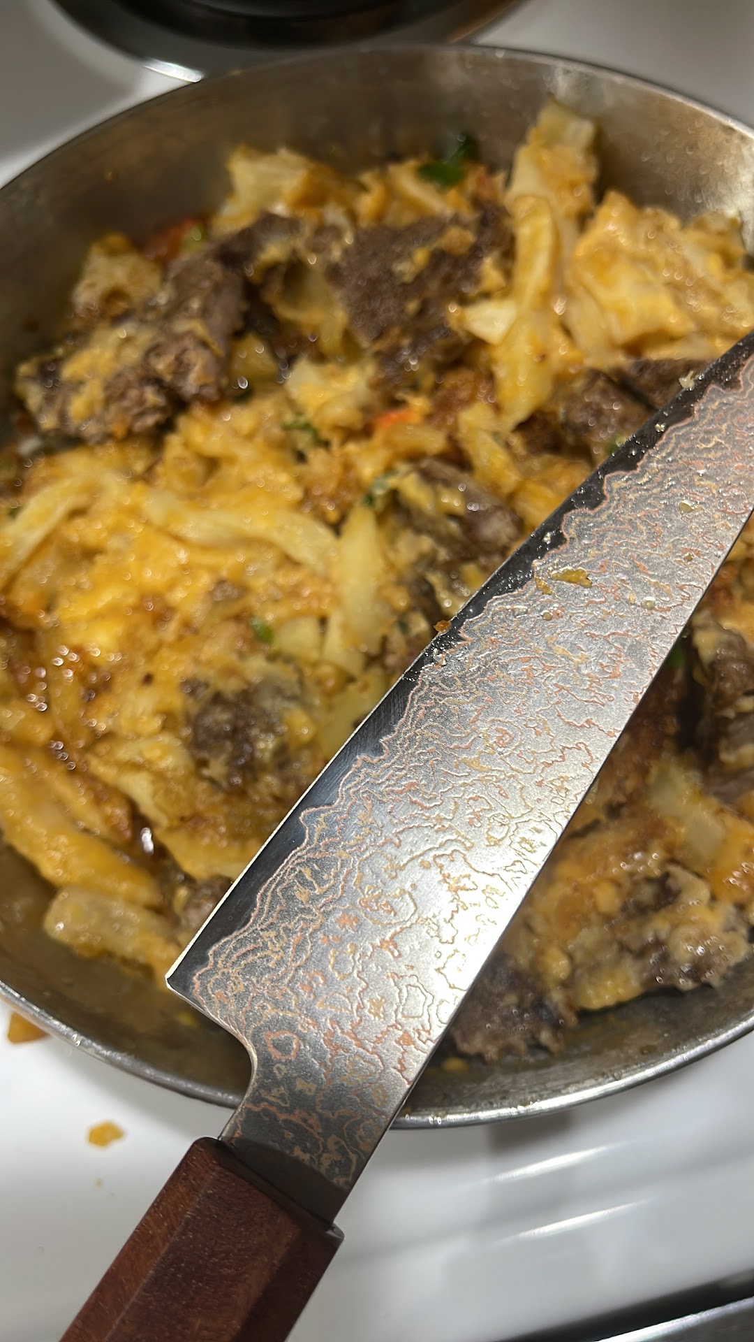 Photo is from the next day when I reheated the meal and took the opportunity to highlight my new copper-Damascus steel...
