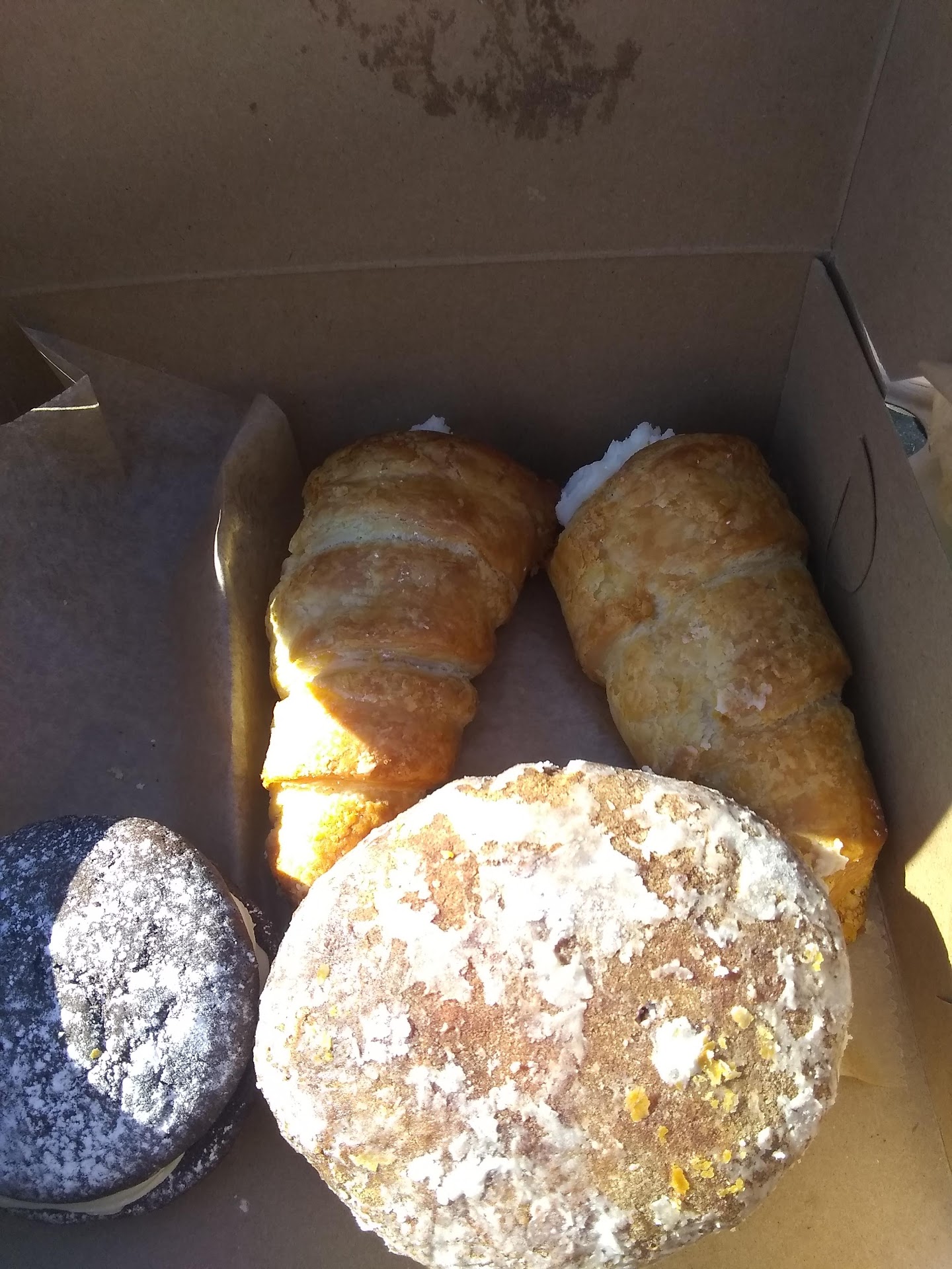 husband surprised me with a couple of things there for my birthday today. The cream filled croissant was ok. Croissant part was a bit over baked but ok. He also got me some Cannolis he was impressed that you filled them on the spot. The cream was not sweet like not even a little. It was hard to judge the filling because the shell was stale and tasted old and oily. Maybe it was an off day but was expecting something better. Specially since I have seen rave reviews on here. I hope you fix the cannolis before anyone else gets them I still have the bad taste...