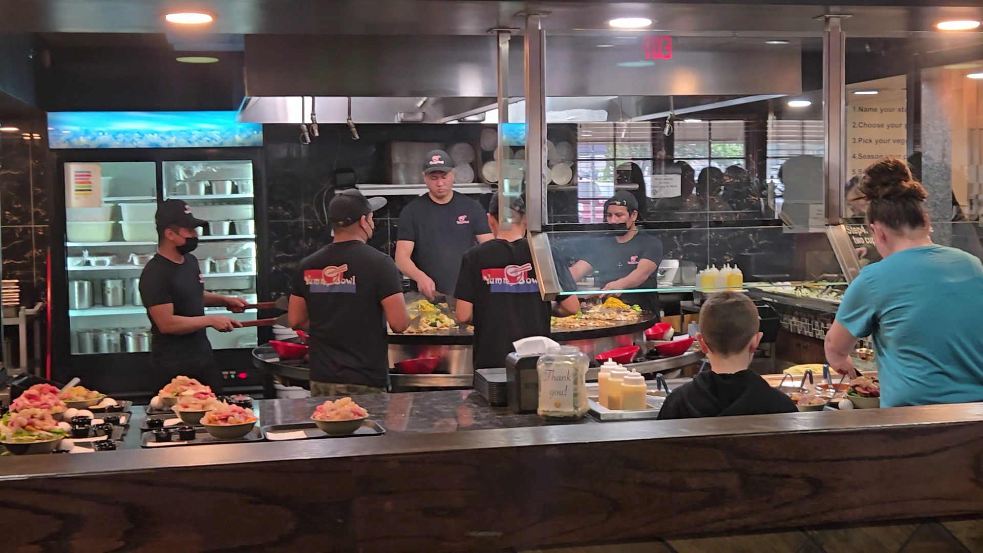 Read more1/19/2024: We've enjoyed Yummy Bowl for several months, but this afternoon was an overall bad experience. After being seated, we waited 20 minutes for the server to bring water and to give us the tabs for the food line. My wife waited another 15 minutes because she was ordering from the menu, and I left to choose ingredients for my bowl. When I came back she was still waiting. She finally put in her order, including two eggrolls. My order was served, but not by our server. Almost 20 minutes later he brought her bowl, but no egg rolls. She never recieved them (and we weren't charged). Our server apologized, and reduced the total bill by 25% accordingly. We paid the bill and left and we wonder whether this was a one-off or how service will be from now on. It didn't help that our served spent considerable time chatting with a couple two booths away while we waited with no food.
