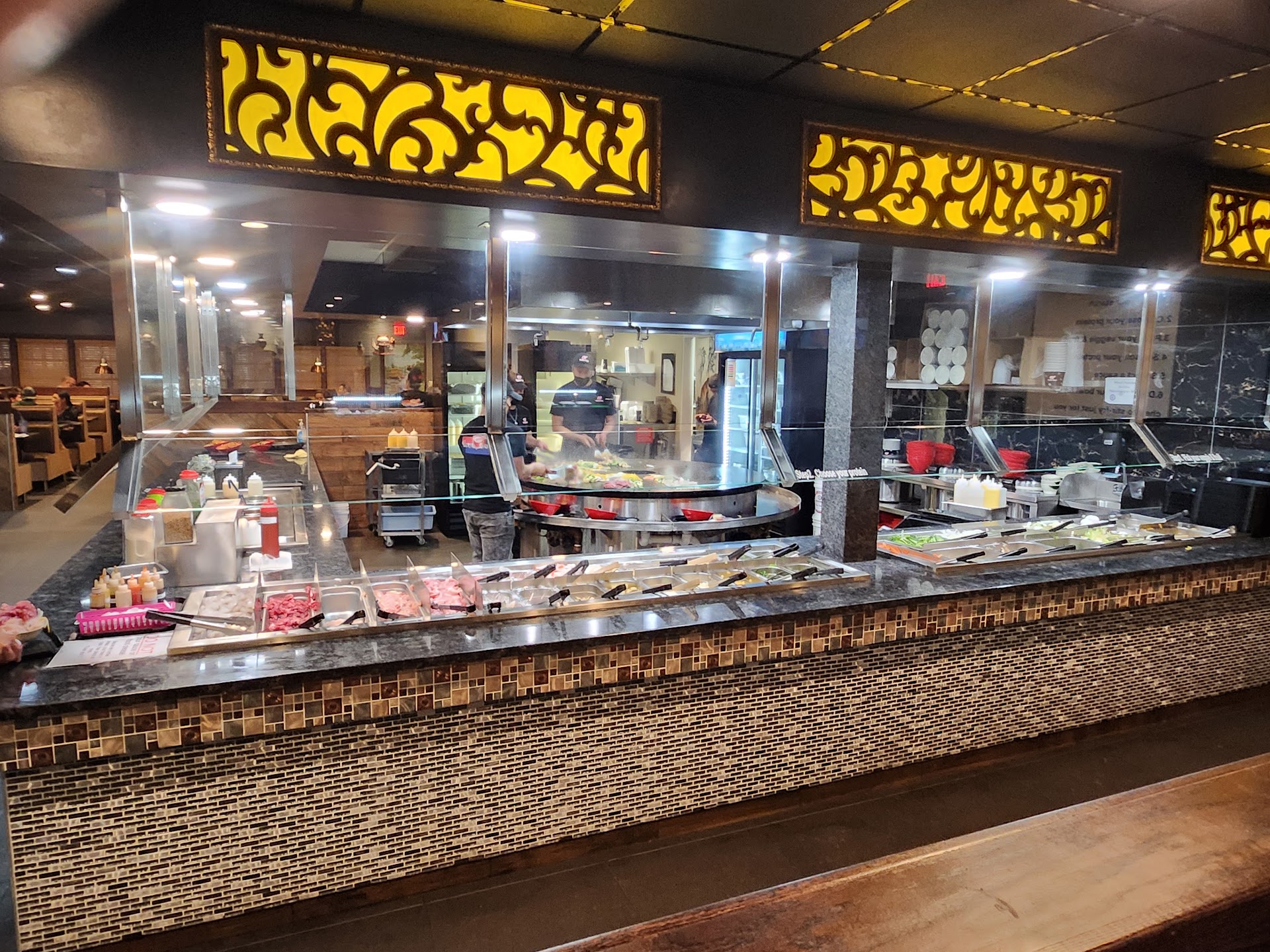 Read moreWasn't sure what the new place was but wife wanted to try it. I was thinking maybe a fancy ramen place but was wrong and very happy about it. So we tried it. Place was clean and staff wonderful. Our server said she was new but we couldn't tell. She answered all our questions and was very knowledgeable about the menu and how to get the foods. If she was new they must train better then any place I been in the past. Got a crab rangoon appetizer. They was one of the best I have had... Then the main event. They give you a bowl, I miss understood and went over before receiving the bowl. So I stood by the tray confused for a second, my own fault LOL. She brought it over to me, sure I'm not the only one to have done this. Back to the foods. You go down the line and put what you want in the foods. Start with various noodles, then meats. They had a wide selection from beef and chicken to the more exotic like octopus. I was surprised by the options. I grabbed a variety to try most things. Then the veggies, I didn't grab any but they had quite a variety here as well. The usual mushrooms, various beens and some things I seen before in Oriental cooking but don't know the name. Then the sauce selection, like 10 different sauces to choose and you can taste them first. They have bottles and little spoons to taste before cooking. So you get to know what you selecting before the food is cooked. Then you give it to the cook, you can actually see them cooking the foods (after golden corral this is a huge plus for me) then you go sit and wait. Wait was not long, a lot faster then expected. The food was delish. Both the wife and I chowed down, no left overs from this place. I knew I should have stuffed the bowl with more LOL. Oh and did I mention the server, very knowledgeable and professional. If she is as new as she said I'm impressed. When dropping the check she let us know how to pay. I hate when they drop it and say nothing so you don't know if to pay them or the person in the front, it's surprising how many places make you figure it out and if you wrong you look silly LOL. So we paid cam to about 50ish including a good tip(under 35 before tip). So price was good for feeding two people...