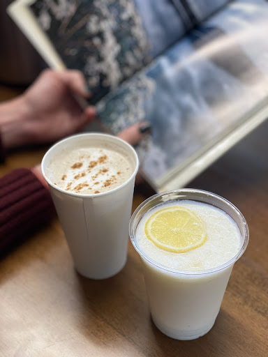 My go-to order is the waffle with fruit and cream, topped with their house-made syrup. My wife really digs their paninis. They've always got delicious, locally made pastries and cookiesātoday I tried the pistachio croissant, which is super good! Their drinks live up to the name and I like that it doesn't feel like a coffee and cocoa factory the way Starbucks and Beans & Brews do. If it's a warm day you gotta try their fresh basil lemonade!