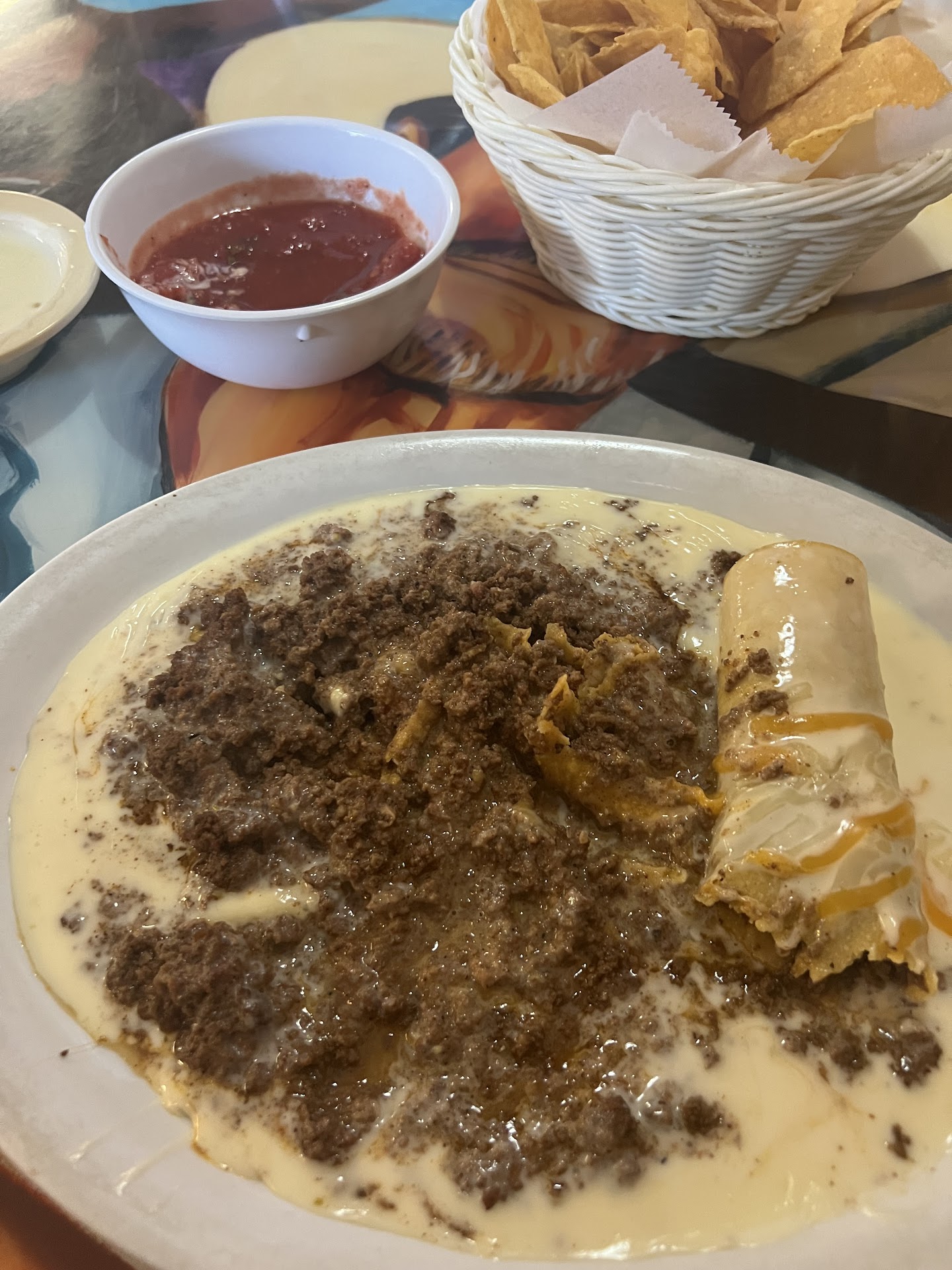 Our decision to eat here was last minute. We had just shopped at Walmart and were hungry. Our waitress was very nice and spoke clear English (not the case with our Lady serving the chips, nice but no English understanding). The chips were good but a little on the hard side...HOWEVER, the dip is NOT very good. My companion does not like tomatoes unless the are pulverized, and these were large chunks. I do not like to taste cilantro (I know, why do I eat mexican) and the dip was completely dominated by cilantro. No lie. Here's where it gets worse. The ground beef used in every dish we ordered had a taste like it had been cooked with dish water...very strange and off-putting flavor. The beans and the rice were on point. That's the food. The men's bathroom sink is a disaster! The faucet is literally so short for the vessel sink that it barely comes over the sink and rest on the inside of the bowl. NOT very sanitary! The restaurant is so small and the choice of furniture is so big that there is barely room for customers. Get a booth if available!!! Now the good news, the prices are fantastic! We ate for under $20. Including the tip of 15% (we always tip regardless of our experience because it's not the waitresses fault). You may have a better experience depending on your entrie choice. We will return, maybe for a...