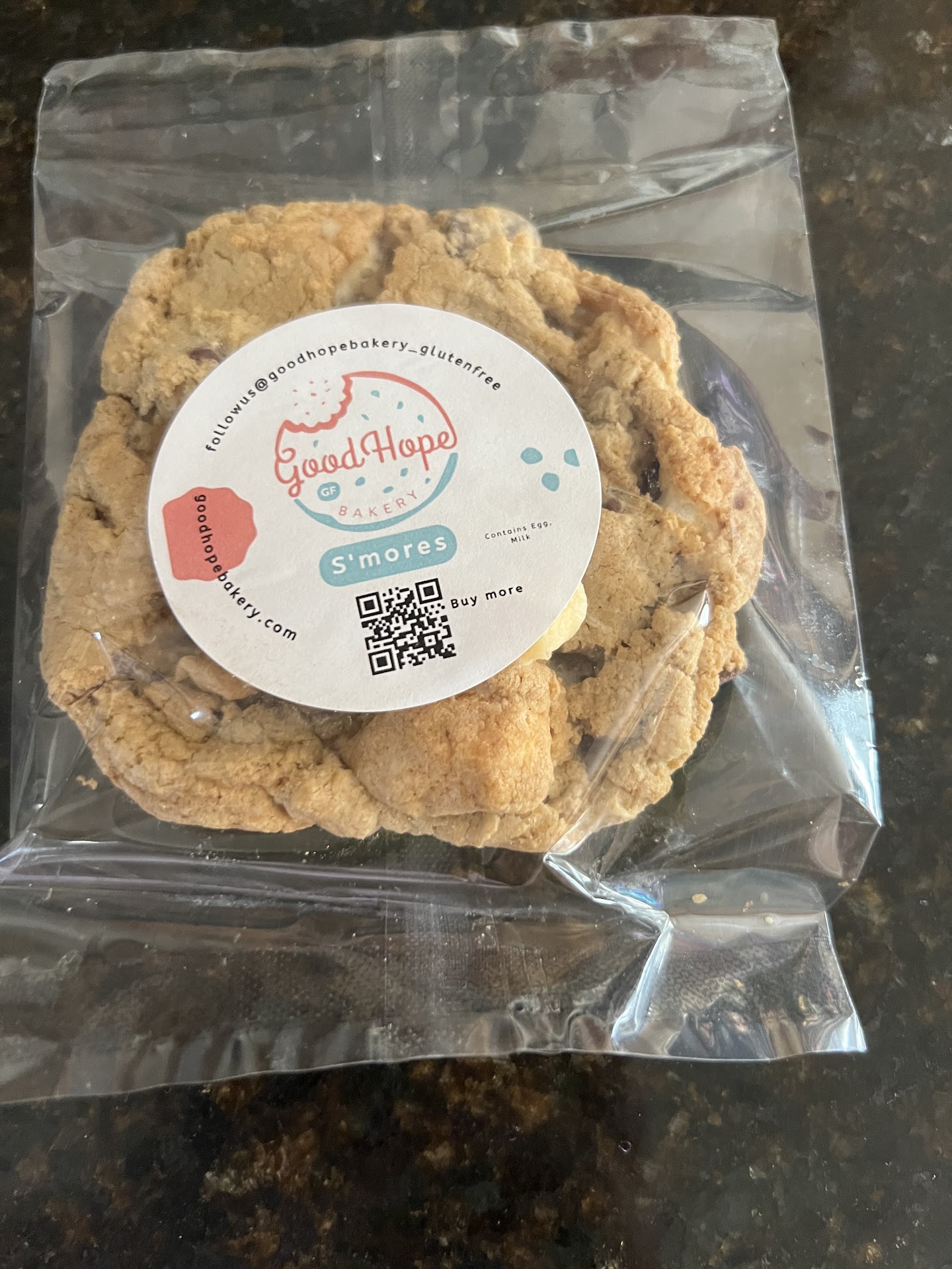 Read moreAs someone with Celiac I have tried many different packaged cookies that mostly tasted like saw dust mixed with chocolate pieces, that come in large packages containing a handful of small cookies. I wanted a go-to cookie that I could have as a treat and feel like it’s a real treat, that I could take with me or eat at home. I happened upon an ad for GOOD HOPE BAKERY. I’ve seen ads before and had such high hopes only to be disappointed, not only in taste, quality and quantity, but in how long it took to deliver. I watched one of the Good Hope videos where the SMORES cookie was featured and I knew I HAD to at least try that. In about a week my order arrived. I bought a 12 pack, go big or go home, right? Each cookie was about the size of your palm. Right away different from all the others. Individually wrapped, great if you want to take it with you, check, check, now is it good? I opened one up and took a bite, and OMG, it was amazing!!!! I felt like I was cheating. The marshmallows made it gooey, large chocolate chunks gave it an amazing chocolatey taste, and the cookie itself held together well, altogether tasting AMAZING. I’ve eaten them as they are, but when we’re dishing up dessert at the house, I get one of my cookies out and I put a scoop of ice cream on top and I’m eating dessert just like everyone else. I absolutely love these cookies. I’ve already ordered another 12 pack. If you’ve been hunting for that go-to treat, you should seriously try these!!!! I absolutely love...
