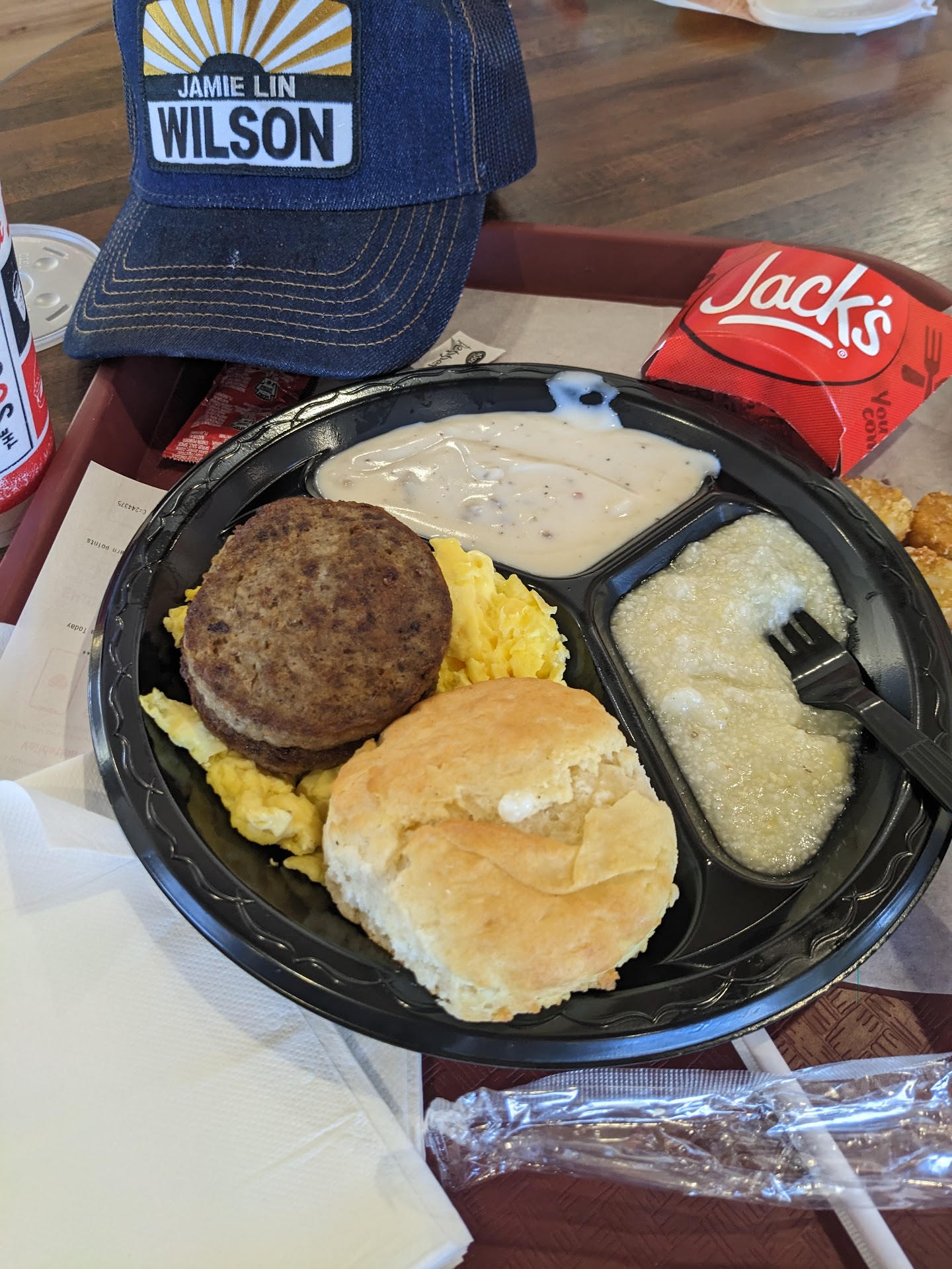 Read moreDriving through Alabama and kept seeing the food signs for Jack's. Had never heard of it so we stopped in to try it on 11/12 around 7:30. Everyone working there seemed clinically depressed. The guy at the register was the saddest of all. He rings you up and is also the one who assembles your plate. He moves at one pace. Slow, damn slow. I am talking a comedy television show exaggerated ridiculous slow. The sad cook had my burger under the lamp in about 3 minutes. Took poor Eeyore 20 more minutes to start to assemble my wife's chicken dinner onto a plate. When finally a sad person came from the back to finally help! But he helps only the sad woman working the drive thru and got right in Eeyore's way and SLOWED HIME EVEN MORE! There were only 4 of us in line and it should should have taken 5 minutes tops. This was not a pandemic "We are short handed" problem which one could understand. Burger and chicken were good, not great. Mashed potatoes and mac and cheese...