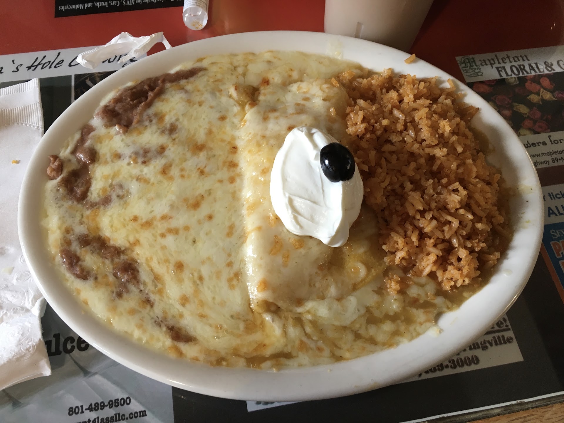 I ate every bite and thoroughly enjoyed it. The refried beans topped with melted cheese made a great bean dip for my remaining chips while adding a nice complimentary flavor to my burrito.