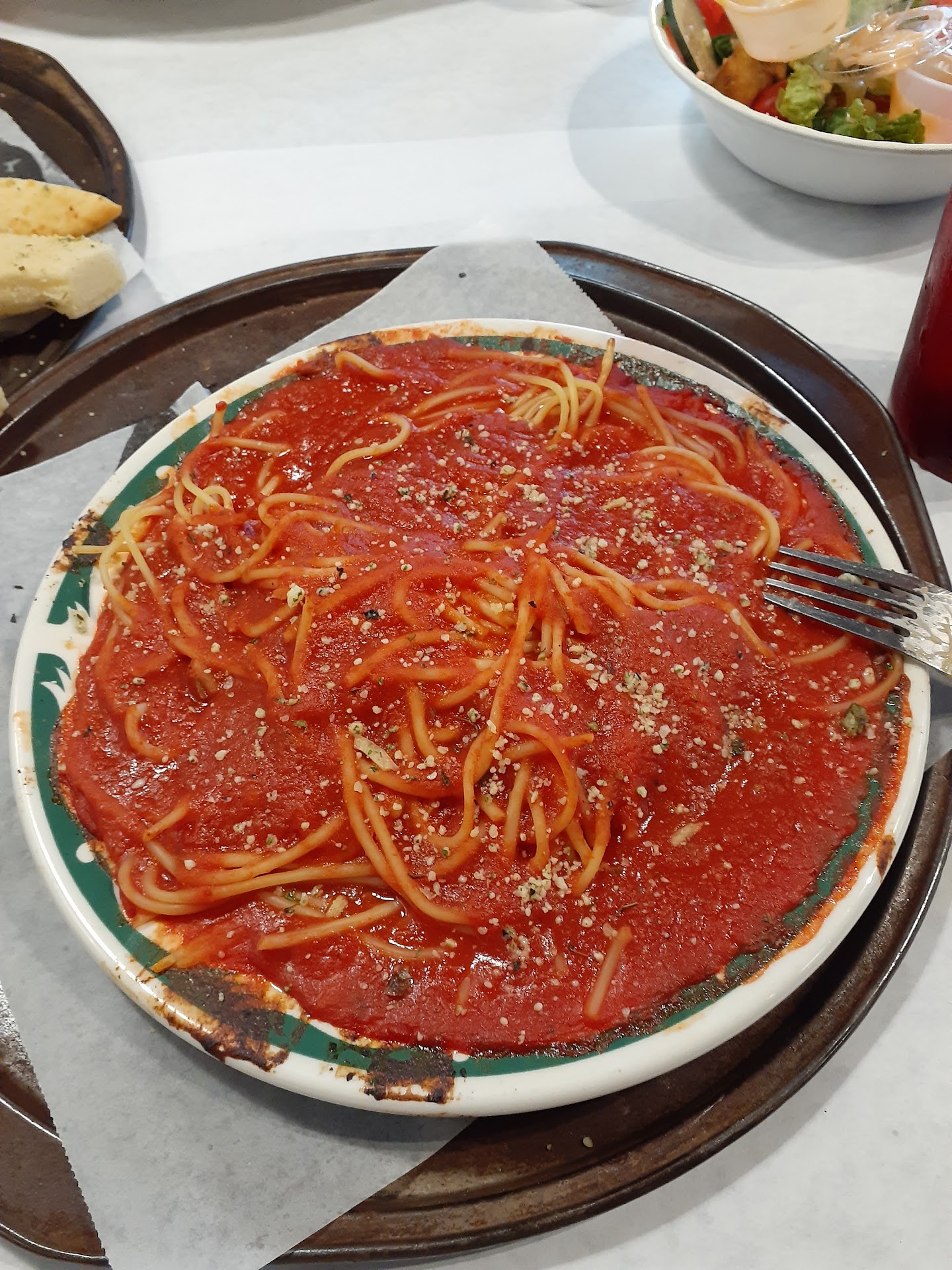 We were wanting a good pizza and decided to try Main Street Italian Bistro in Springville. The place had good reviews therefore we were excited to give it a try . Due to Covid, we decided to pick it up. I tried calling in the order ahead but the phone stayed busy. After trying to call 20 plus times ( not exaggerating), I decided to just stop by to order. It was hard to tell where the entrance was and it is a very small place. When I entered, there were four tables occupied with people dining in. There were no workers to be seen and no desk or sign of any sort to tell you what to do. We werenât sure if we came in the right entrance or not. We stood there awkwardly for several minutes and finally a server came out. I told her we wanted to place a to-go order and she said âok but you can place orders by callingâ. I explained that we had been calling and the phone was staying busy. She apologized and then explained that sometimes the phone gets left off the hook. She took our order ( cheese pizza with bacon and an order of beignets) and told us it would be 30-35 mins. I ran home and dropped my groceries off and came back ( about 40 mins later) The same server came up and told me that our pizza had not been put in the oven yet and that it would be another 10-15 minutes more. While waiting, I went ahead to pay and she gave me the wrong check. I told her this wasnât ours, finally, we got our check paid. Then we continued waiting and waiting! While waiting ( and watching)there was another young server with really long dark brown hair. I mention her hair because it was in no way pulled up or back. When she was placing food on a young couples table her hair brushed over the breadsticks. Gross! One positive thing I did see was that they are covering the tables with disposable paper after each guest. Finally, an hour after ordering we got our pizza and beignets. I was hoping that after all of that, that the pizza would be good. The pizza was just ok! I would say it was similar to a frozen Walmart deli pizza that you bake at home. It wasnât bad, just mediocre. The beignets were good! This was our first time and will be our last. From beginning to end, it was just disappointment!