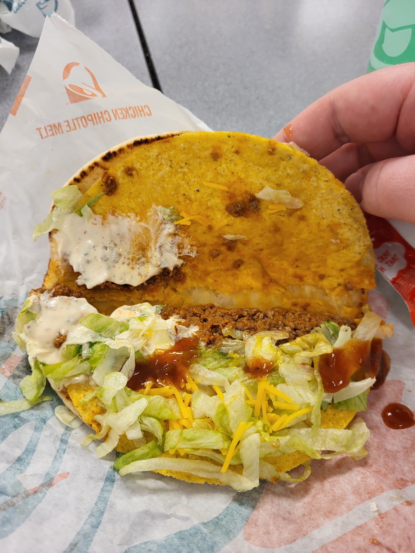 Read moreI normally dislike leaving negative reviews, but this one got me. Thought we would take it easy Saturday night and not cook. Taco bell was the request from kids. So that was what we got. I agree with all of the other reviews. This location took about 3 times as long to get food in comparison to any other Taco bell. There was no line(two cars that had already ordered)when I got there, so there should be no excuse for the fact that it still took 10minutes for my food to come out of the window. Here's the fun kicker. Ordered $40-50 of food. My wife and I are the only ones that ate the chalupas and the basic tacos that come with the combos. We had the joy of waking up at 3am puking our guts out with extreme body aches and diarrhea. Our kids are totally fine. So that leads us to believe it was one of the items we ate but the kids did not. Needless to say, we will officially be permanently removing ourselves as patrons of Taco bell(at the very least this location) Thanks for ruining the Easter plans we had...