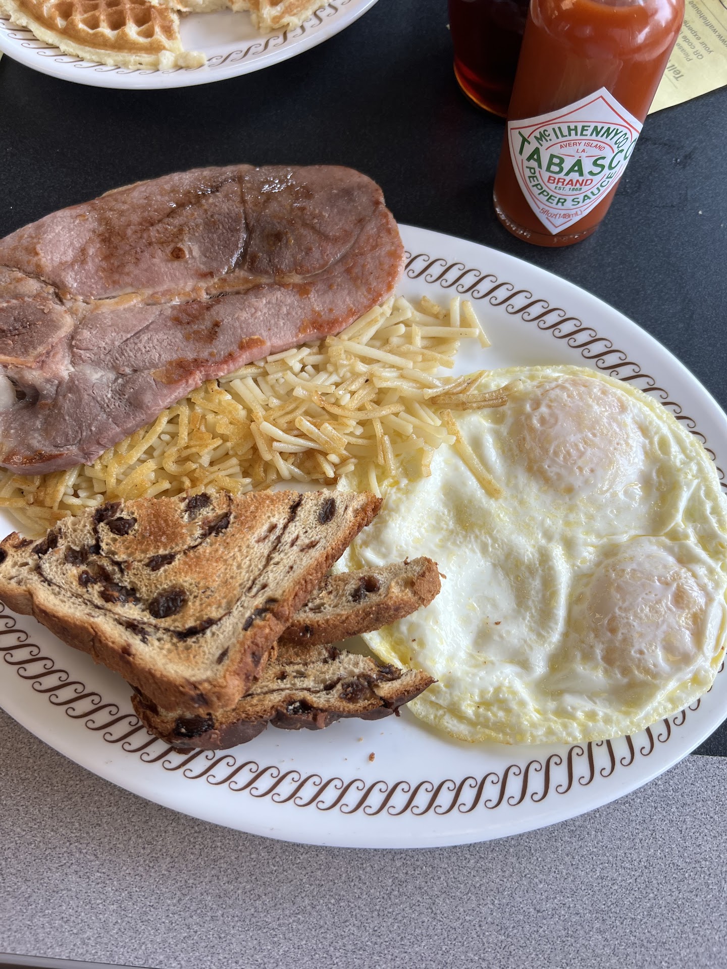 The only downside of Waffle House is that they don't have a pancake selection. The bathrooms are normally less than the most sanitary. With that being said, you may want to do your business and wash your hands elsewhere.