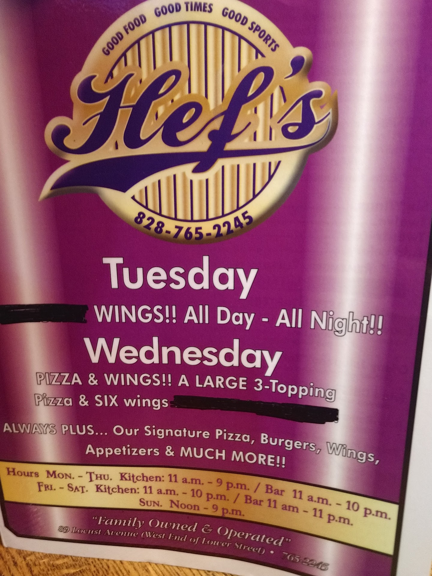 Read moreOk, it feels more like a bar with a restaurant, as opposed to a restaurant with a bar. This was our first impression, which almost made us not go in. However, don't let that discourage you. We visited Hef's last weekend, at the recommendation of a complete stranger we met at the "Fire on the Mountain" a Blacksmiths event downtown Spruce Pine. While the restaurant feels more like a bar, the food is actually very good. They don't serve typical bar food that is below average. But instead, we found the food to be very good and fairly priced. The servers are also very attentative. We really enjoyed their pizza, boneless chicken wings and calamari, and oh, also sweet potato fries. Everything was great. On Wednesdays, you can enjoy a large 3-topping pizza with 6 wings for $12. What a value! Stop in to enjoy some great casual food, in a casual environment at Hef's Restayrant. I really believe you will enjoy it. Make sure you tip your server well. They work very hard at earning your business, with a smile. You might even run into Hef,...