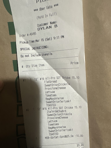 Previous review: I placed a pickup order with extra onions and bell peppers. Didn't recieve extra. Ordered the chicken bacon ranch and for the first time it was very soggy on the meat side as soon as I began eating it which was before the time my mobile order was supposed to be ready by. Also it wasn't cut through one side of the bun so I had to tear it apart which caused some toppings to fall out. I noticed this location is the stingiest...
