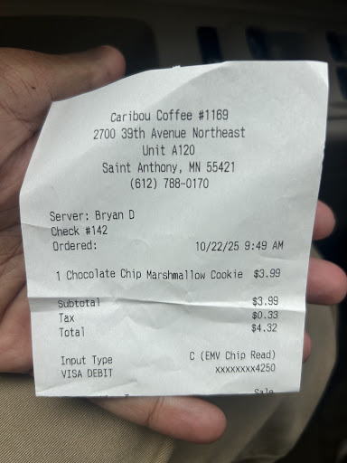 Read moreHonestly, I used to really like this little Caribou. These days, every time I go, I find myself wondering why I don't drive further to try someplace else. In fact, I'm committed to it now. While the drinks are usually prompt and made well, the staff is very workmanlike and seem totally taken aback by friendliness. I keep my distance, wear my mask and pay by card, but I can almost feel how annoyed most of the staff is they actually have to interact with somebody. Like I have ruined their day because I didn't order ahead (can't with my order). It's no fun going someplace...