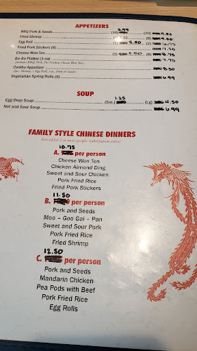 I’ve been here many times, as my kids request it, but my husband and I give each other a look when they do because our experience is that a lot of their dishes look and taste the same. On our first visit we ordered orange chicken and sweet and sour pork. The meat came out on identical plates and we couldn’t tell the difference. The sauces were the same texture and color. I tried them and couldn’t tell the difference so I asked about it and the waitress looked at me like I was crazy, insisting they were different (but they looked & tasted EXACTLY the same). On my latest visit I discovered they’ve hiked up the prices for mediocre food (maybe because they’re very generous with the portions?) and the pork was an extra cost. Plus they gave us less of it than an identical chicken dish and it was so old and dry I could barely choke it down. I really don’t think I can let my kids pick this place again, it’s not that great. ...