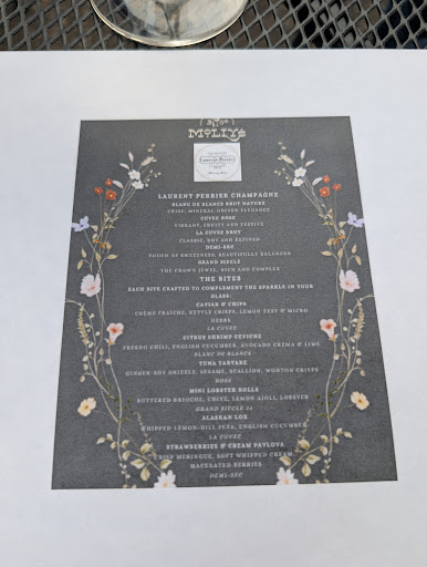 Read moreMolly's is an amazing spot to dine, have fun or relax (or both) and enjoy a very thought out menu. The presentation of Molly's dishes are a strong cut above most restaurants who offer casual dining. Me and my friend were so pleased with what we ordered. The flavors of each component were out of this world! You had to taste everything! The wine selection is unique and I just had to try a glass of the Riesling from the Five Finger Lakes, NY. A region I had heard about but had not yet tasted! I ordered the bottle, I mean, wine not?! We were dining out on the patio and Molly came out with the bottle, chilled. She told me the story behind the vineyard, it's growers and dedication to the grape varietal itself. After hearing her story, I loved that riesling even more. So refreshing on a warm day in July and would be excellent any time of the year, with any of her dishes.