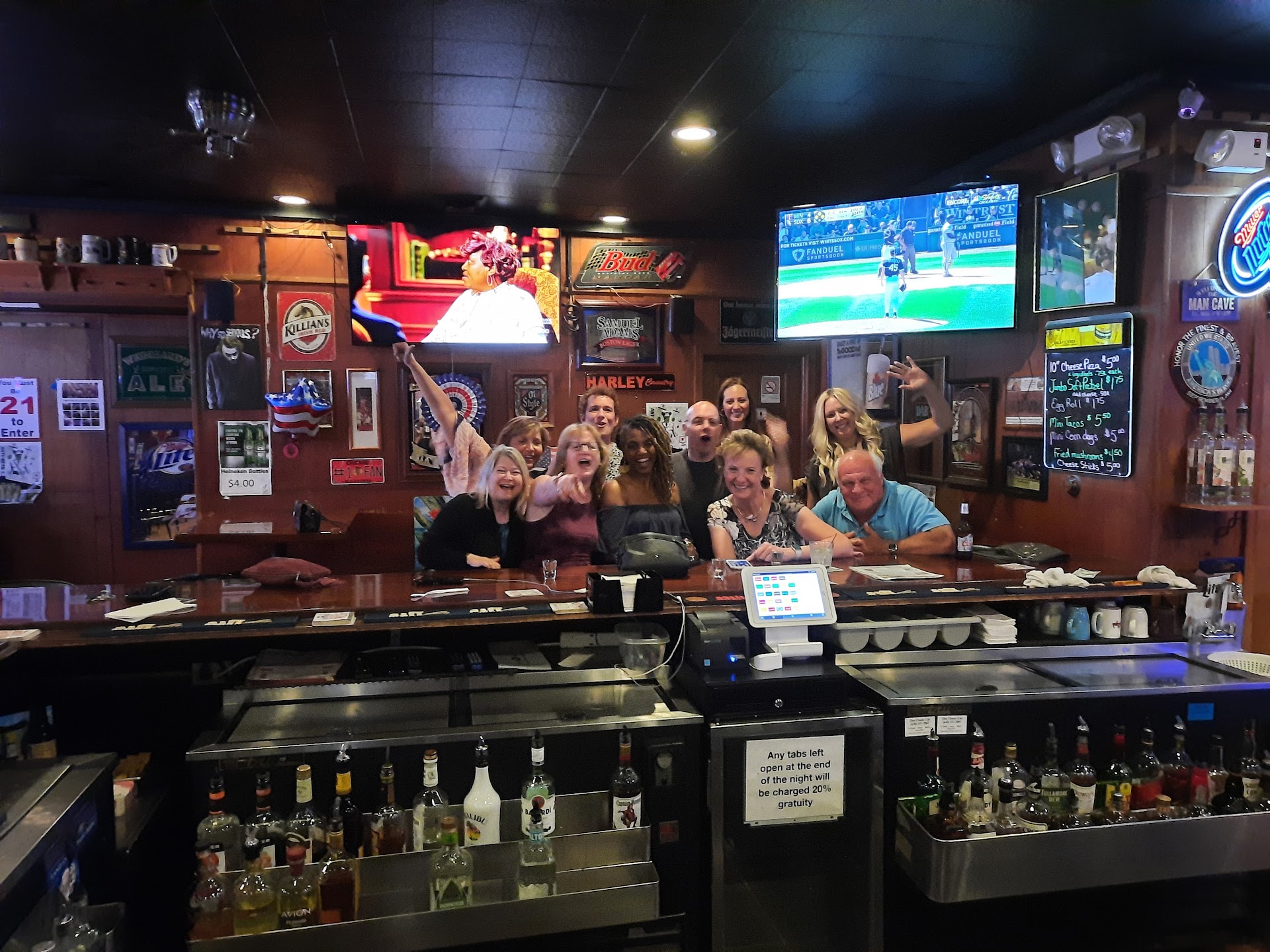 Cold beer . Great beer and shot bar . There's not really much good quality food there . A lot of typical deep fried items like mini tacos, cheese sticks , wings etc . They do make a good pizza there , however not from scratch . They use premade pizza dough and canned pizza sauce. The pizza is very good though. It has a comfortable dive bar atmosphere with two good bartenders. Great homey neighborhood joint . The people there (customers)...